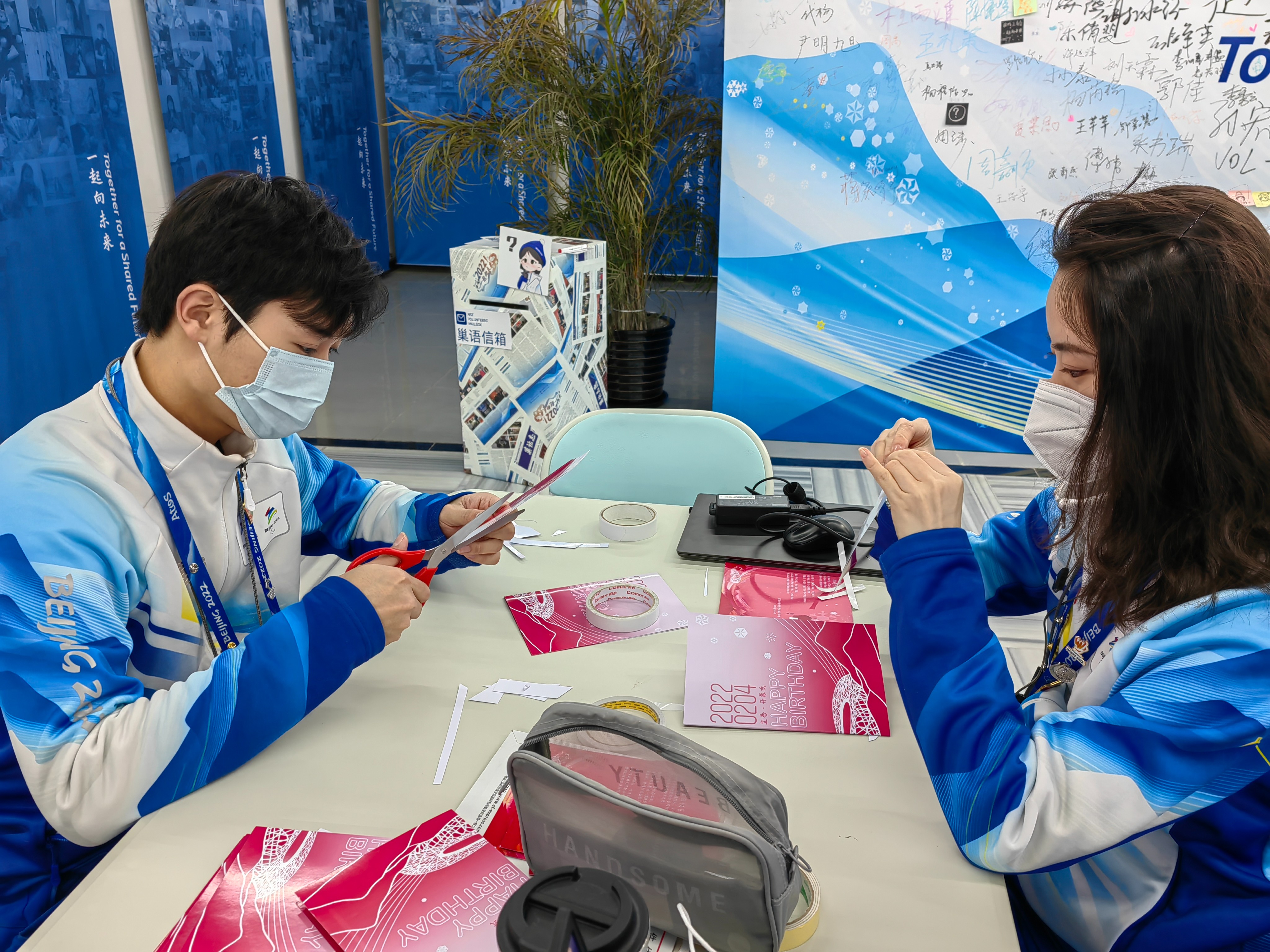 为此,“志愿者之家”设计了很多活动包括微沙龙、音乐会、抽奖等活动,最温暖的当然莫过于特殊的“生日会”。在“志愿者之家”每个月都会组织一次集体生日会,虽然没有蛋糕,但是收到志愿者们手工制作的贺卡、画像、照片,也让每一个寿星都觉得格外温暖。2月4日是冬奥会的开幕式,那天同时也是7位志愿者的生日,如何让他们收到惊喜的礼物,宝月他们可是绞尽脑汁。