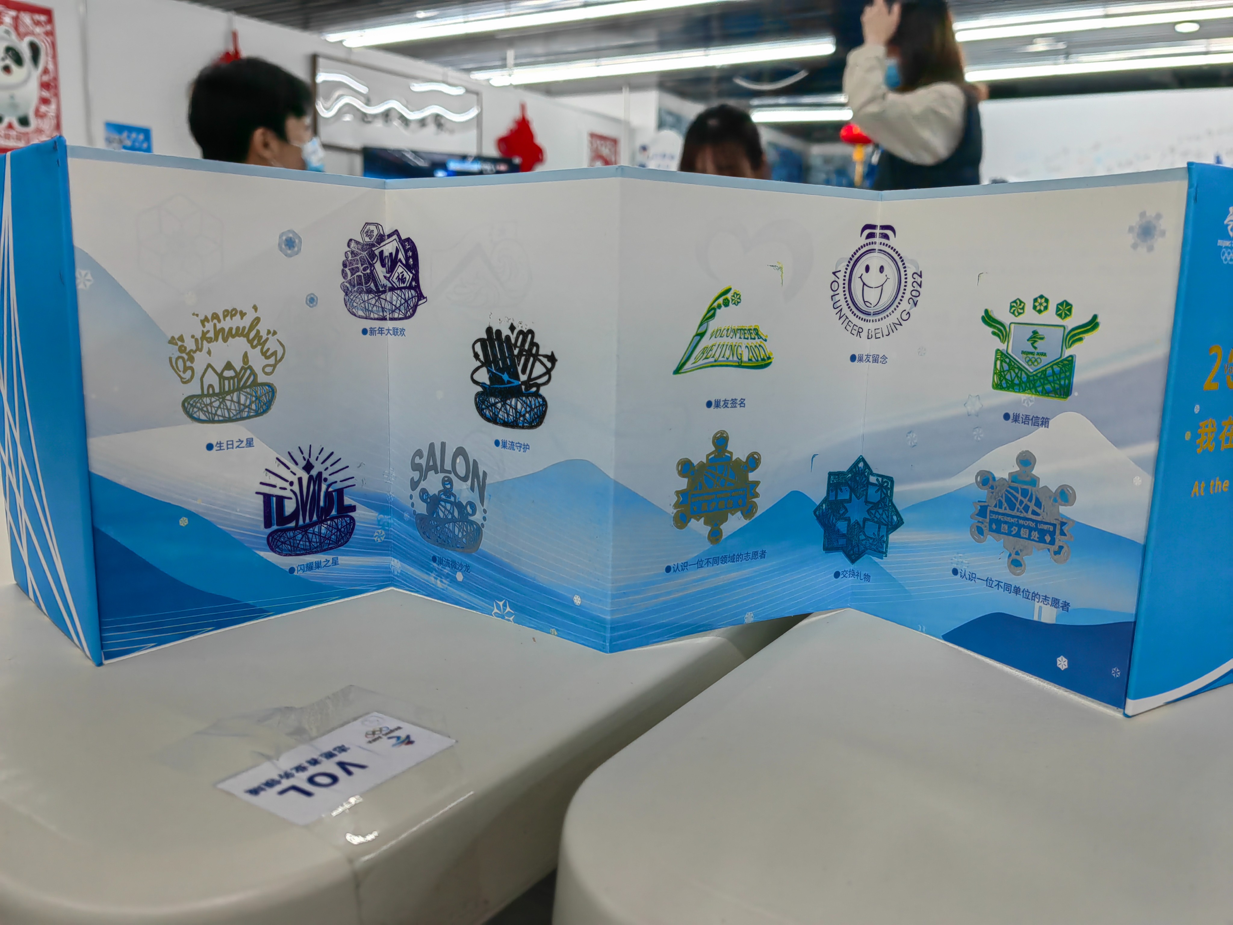 鸟巢的志愿者还有一个特别的心头爱,那就是“我在鸟巢做志愿”打卡手册。这个手册上可以盖24个章,第一次进鸟巢、第一次穿志愿者制服,第一次佩戴志愿者工作证,连续工作一定天数,参加“志愿者之家”的活动都可以盖一次章,全部盖满后无疑是志愿者的一份珍贵礼物。这小小的志愿者手册看上去可可爱爱,但你想象不到志愿者们花了三个多月时间,设计了四十多稿。