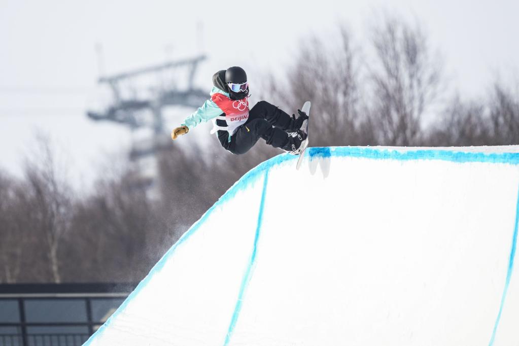 2月10日,北京2022年冬奥会单板滑雪女子U型场地技巧决赛在张家口云顶滑雪公园举行,中国选手蔡雪桐在比赛中。新华社记者许畅摄