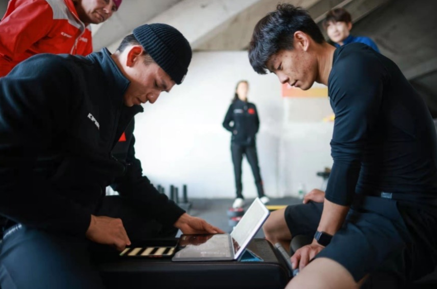 两位“数字教练”还依托国家跳台滑雪科研训练基地和风洞实验室,进行跳台滑雪和越野滑雪训练的视频生物力学分析、风洞训练三维动作捕捉和空气阻力参数测评、越野滑行训练机能监控、身体功能训练等工作,帮助运动员找到减阻的最优解。“我们在风洞中指导运动员训练,寻找每位运动员最佳的减阻姿态,并进行姿态的优化和纠正。”张栋说,他们拍摄视频并制成技术分析报告,视频可以供运动员和教练员回看纠正,分析报告可以为教练和专家指导提供支持。值得骄傲的是,俩人用两个月的时间就让运动员的平均飞行距离增加了4米。