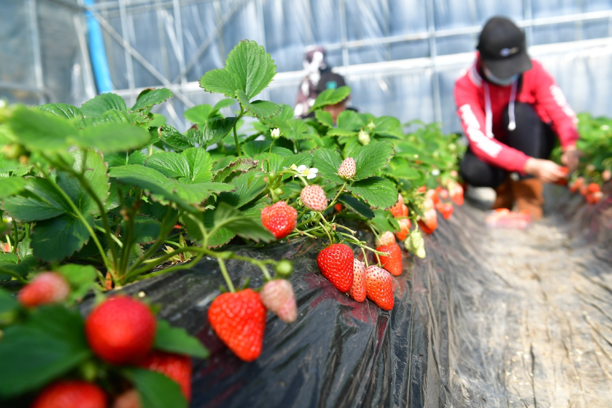 草莓园负责人胡永杰向记者介绍,这里的草莓都是使用水果酵素作为肥料,水果酵素区别于农家肥及化学肥料,是由水果、黑糖、水、奶等发酵4个月后制成的肥料,培育出来的草莓不仅绿色健康,而且表面光洁、果实硬度好,味道浓郁。“今年春节期间,我们草莓采摘园每天接待70多人。”胡永杰说,本打算大年初一歇上一天,结果只歇了半天,下午就被想采摘的市民叫来了,每天光是游客采摘就是一笔不小的收入。除了草莓,大棚内的其他蔬菜也在春节期间上市,不仅丰富了游客体验,还通过线上销售的方式被送往百姓的餐桌。