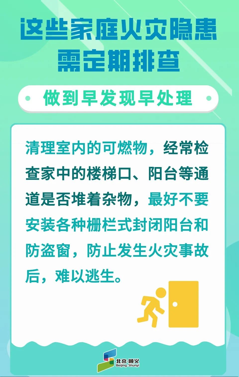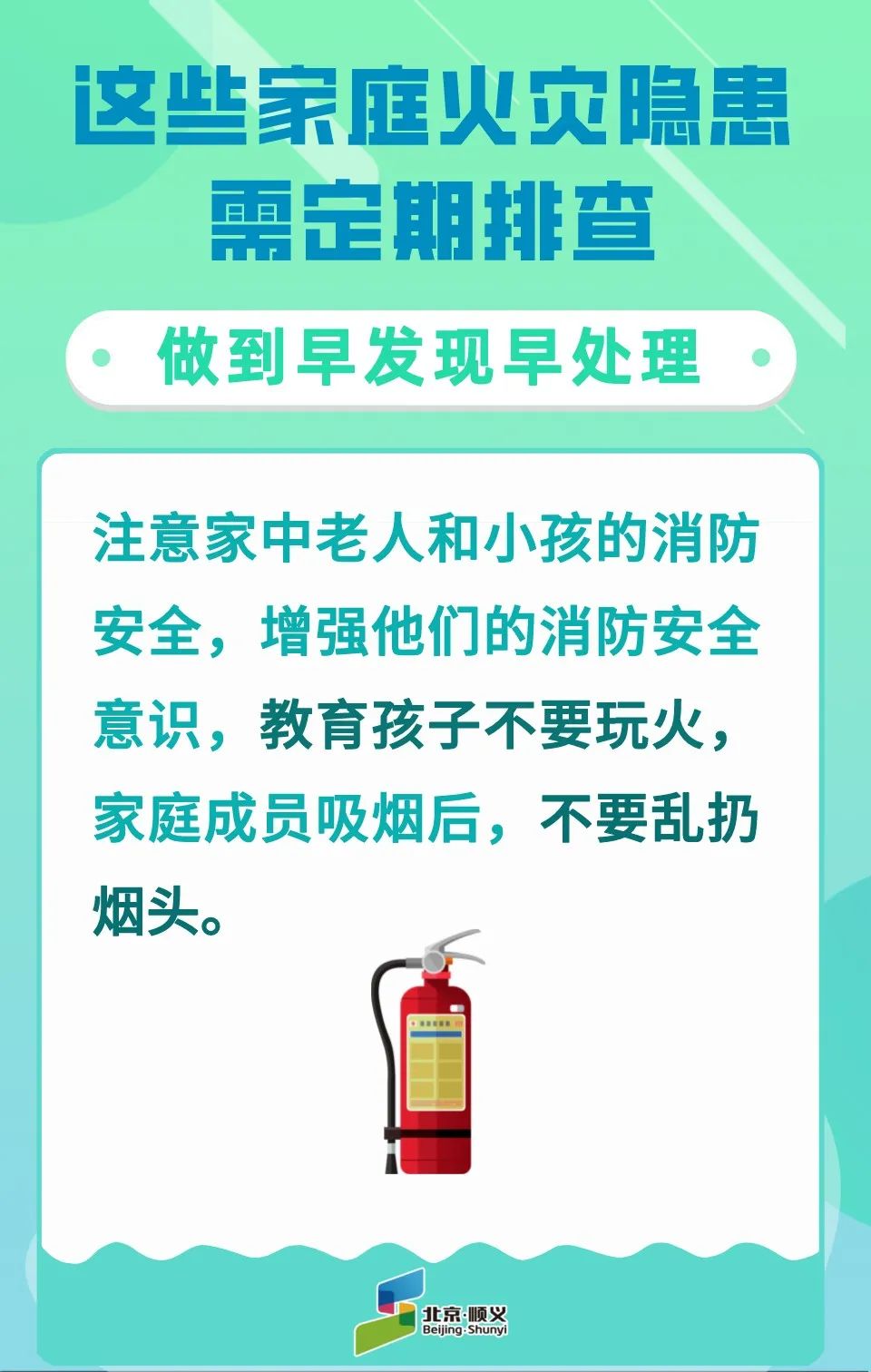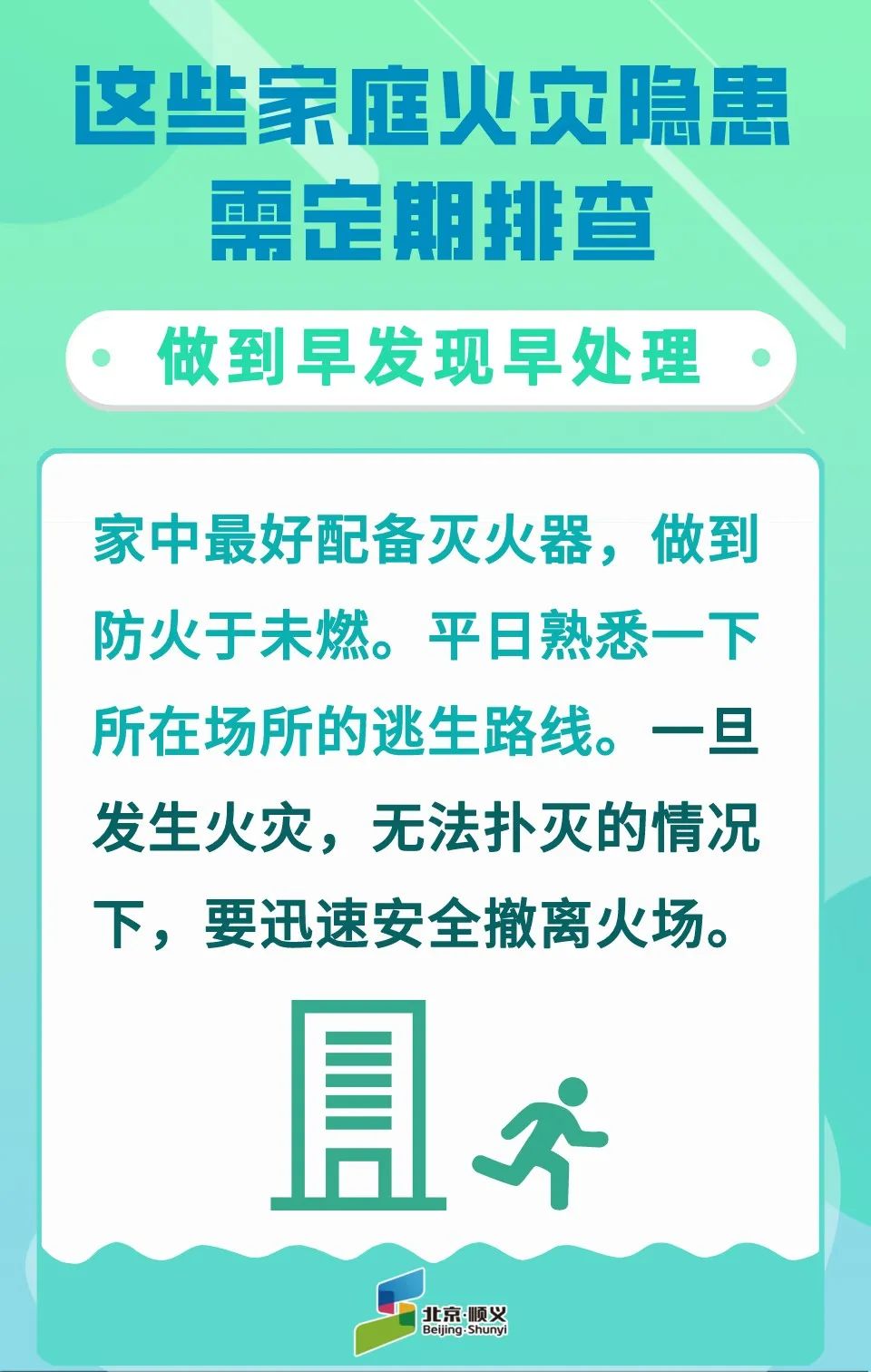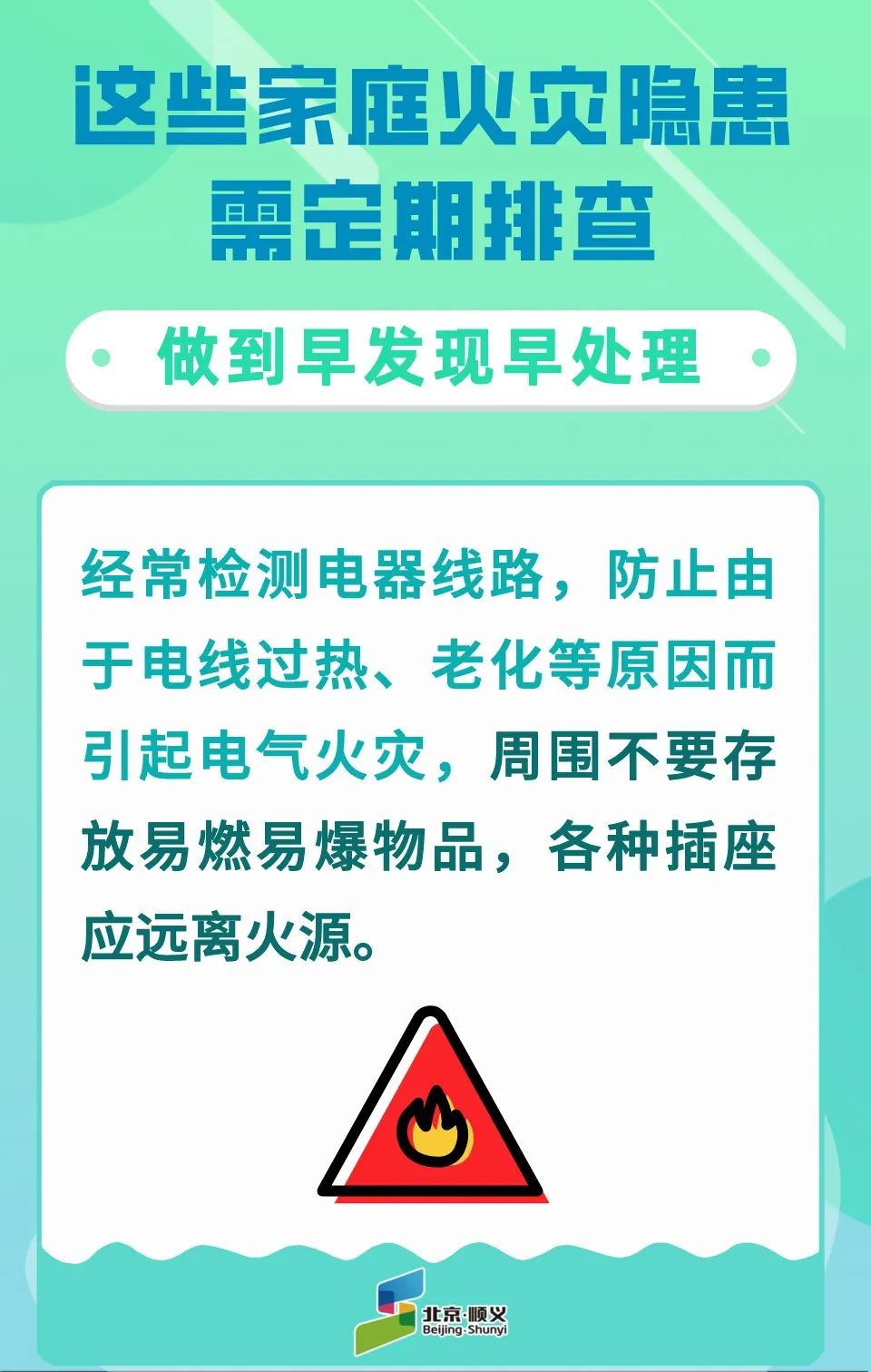 家庭中往往会有许多被忽视的火灾隐患,一不小心就会酿成大祸。在此,顺义消防救援支队提醒广大居民朋友,家庭火灾隐患需定期排查,做到早发现早处理。