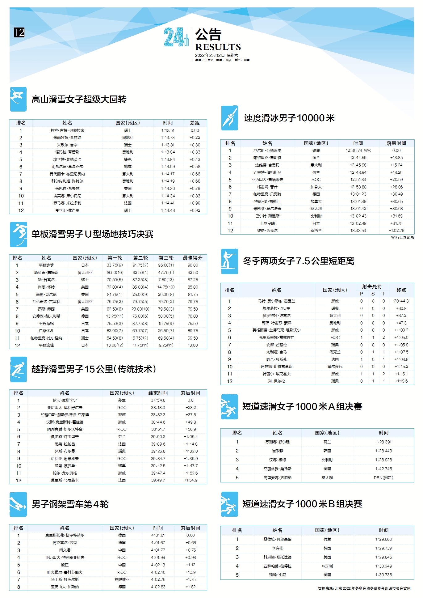 2月12日|冬奥会刊今日精彩版面速览