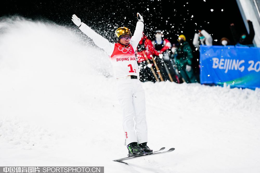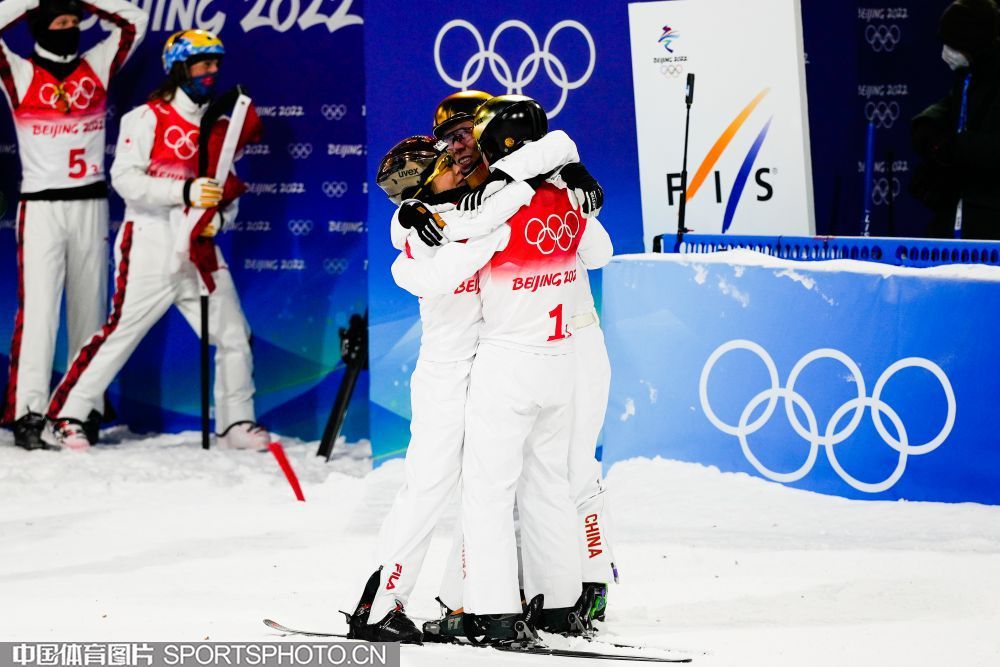 自由式滑雪空中技巧混合团体项目是北京冬奥会新增项目,有6支队伍参加角逐。由于俄罗斯奥委会代表队的领军者马克西姆缺阵,中国队的最大对手是美国队。资格赛,美国的阿什莉·考德威尔拿出与徐梦桃一样的4.293的最高难度动作,得到104.31分,徐梦桃完成了同样的难度动作,在空中完成比较出色,但落地时手有触雪瑕疵,拿到94.01分,但随后出场的贾宗洋和齐广璞发挥出色,中国队以336.89分排名第一,进入决赛。美国队以330.55分位列第二,同样晋级决赛。资格赛后,三人相互拥抱,为彼此打气。