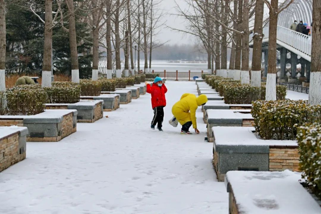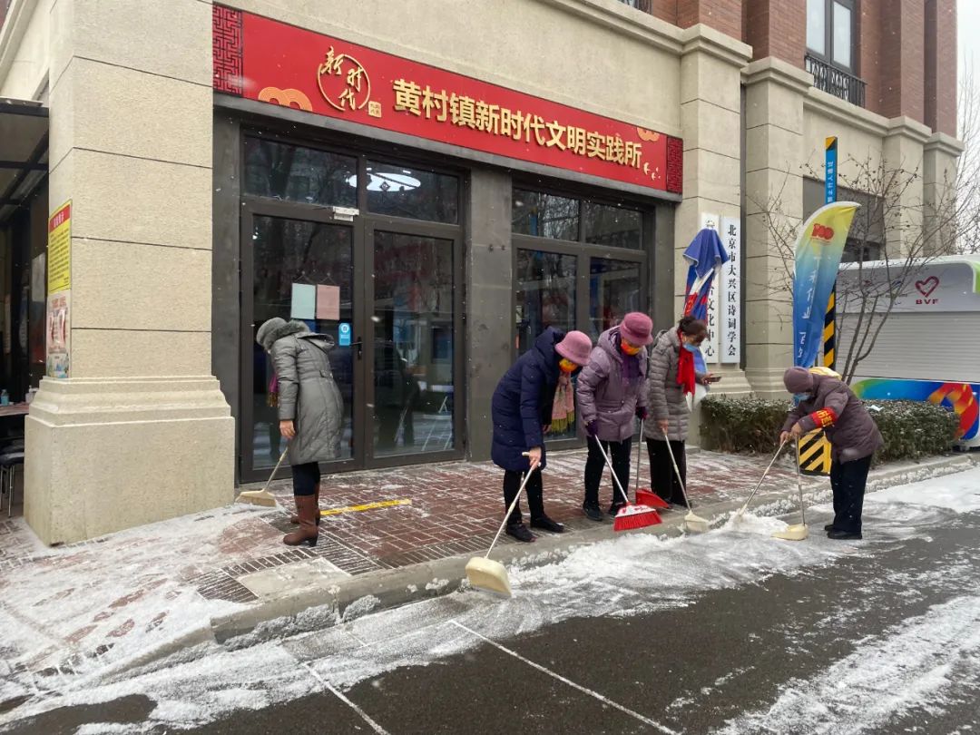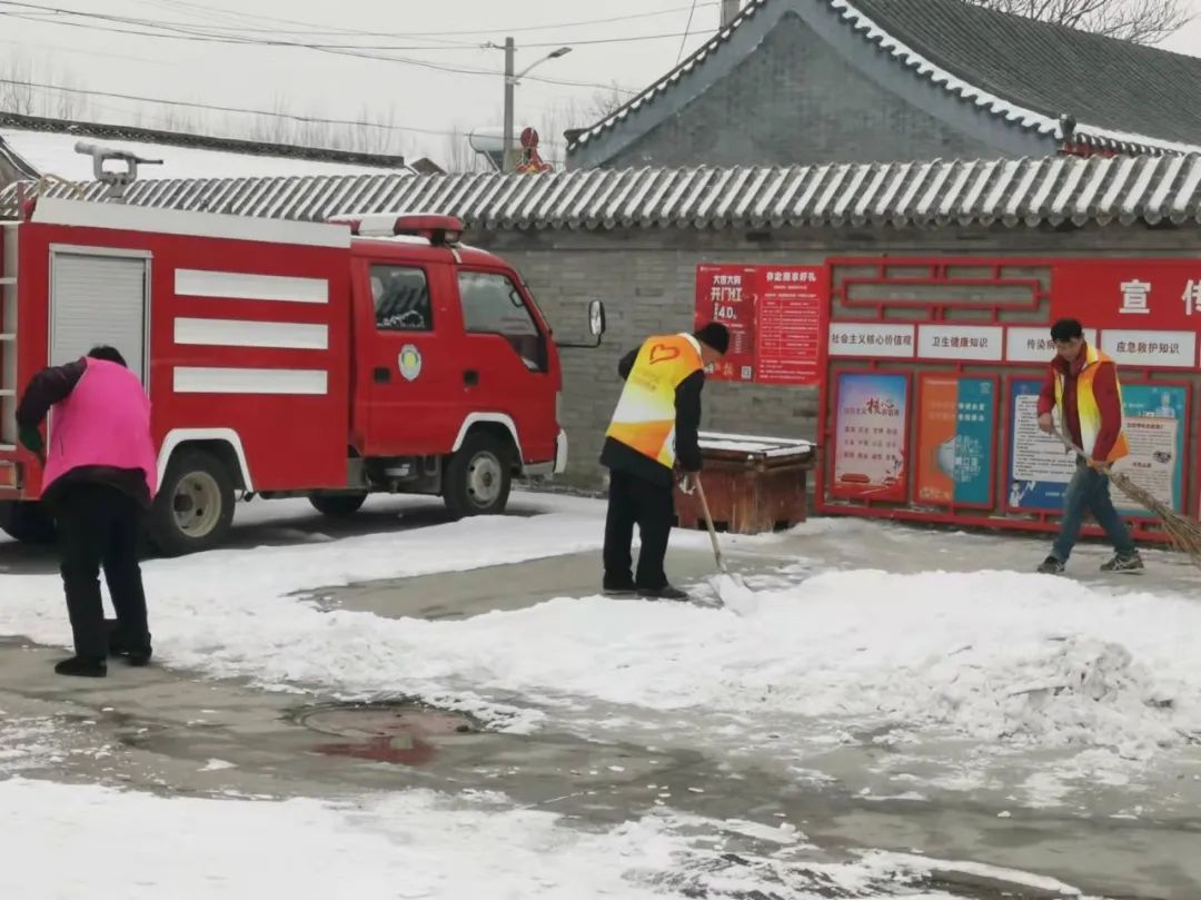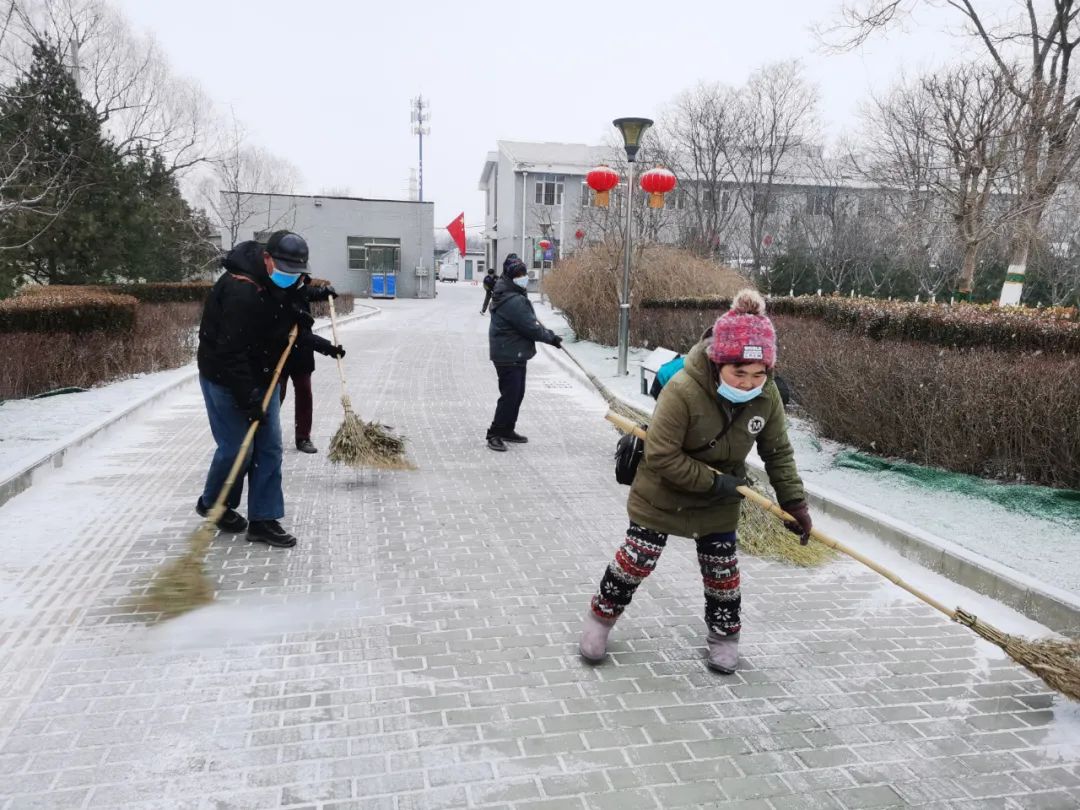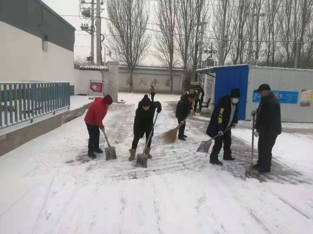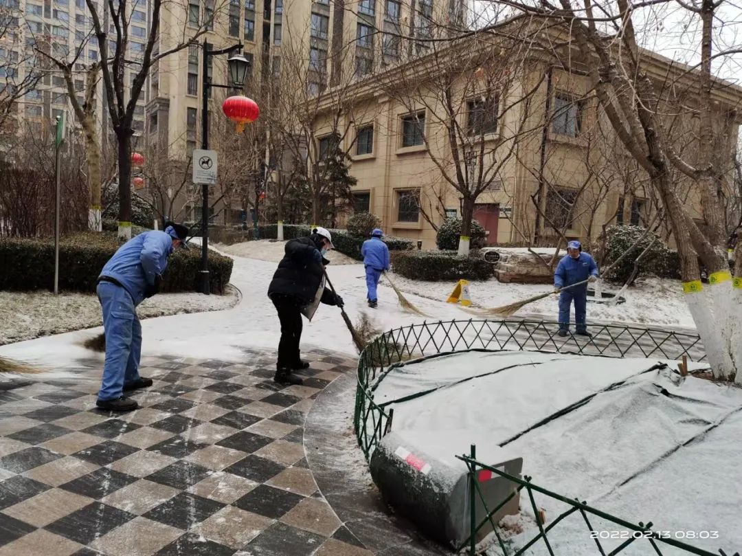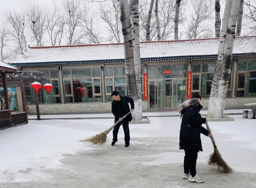 协调各物业及时清扫积雪、保证居民通行安全;各社区组织社工、志愿者开展扫雪铲冰活动,并结合新时代文明实践所、站开展各类活动;清源街道团工委组织12名青少年在滨河西里北区社区单元楼门前、公园内开展扫雪活动;学院社区组织辖区志愿家庭开展扫雪活动。