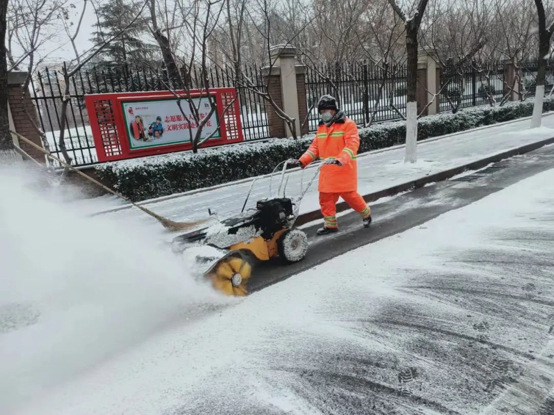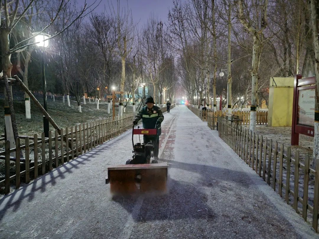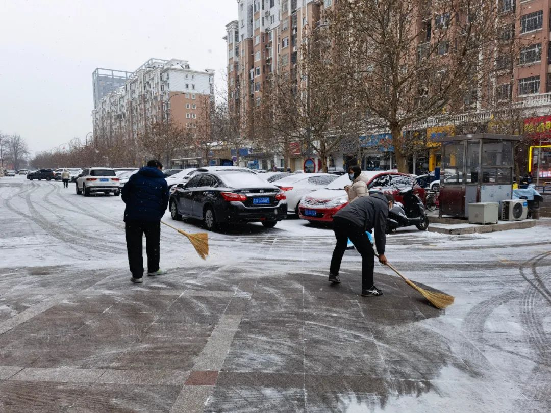 各单位随时关注天气情况,开展扫雪铲冰工作,针对辖区内容易积雪、路滑等地段进行重点清理,最大限度地减少降雪对交通和环境的影响。