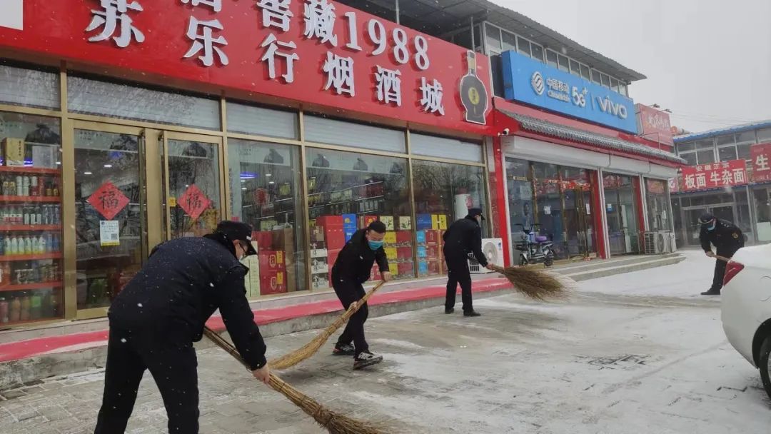 广泛动员各村(社区)“两委”班子、志愿者、群众、社会单位参与扫雪铲冰,各职能部门迅速到岗,帮助商超门店落实“门前三包”责任,清理门前、道路积雪,应急保障队伍闻雪而动,全力开展扫雪铲冰工作。截至目前,青云店镇共出动730余人,保障车辆65辆,扫雪铲冰工具200余件。