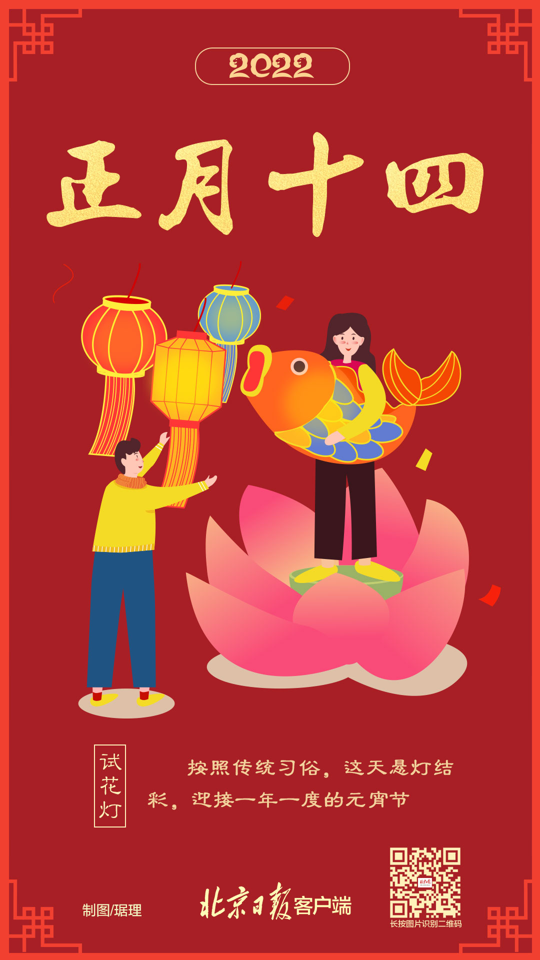 今天是正月十四,人们悬灯结彩,迎接即将到来的元宵节