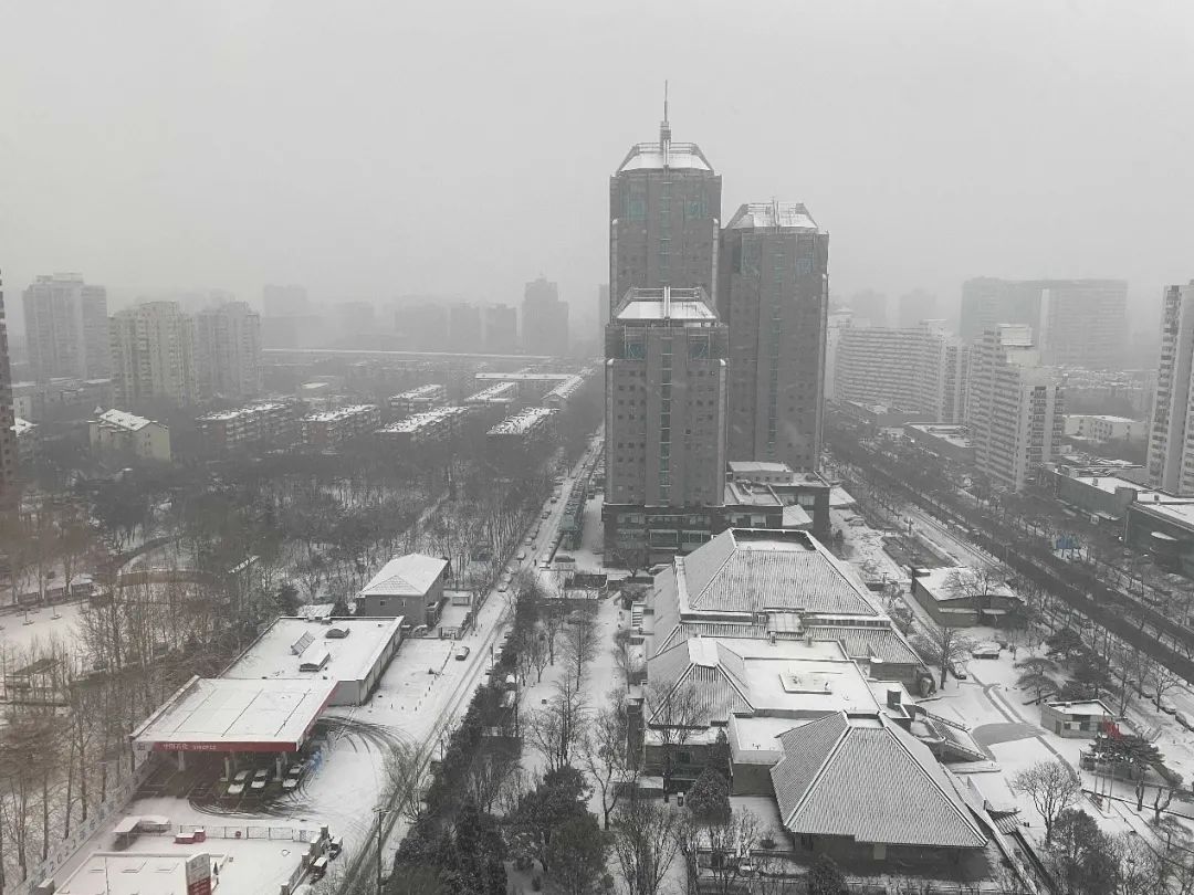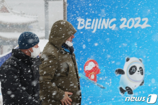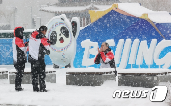 韩国news1通讯社报道,2月13日,北京迎来第一场雪。人们纷纷在北京主媒体中心前拍照留念。news1通讯社还表示,此次北京降雪,营造出了奥运氛围。