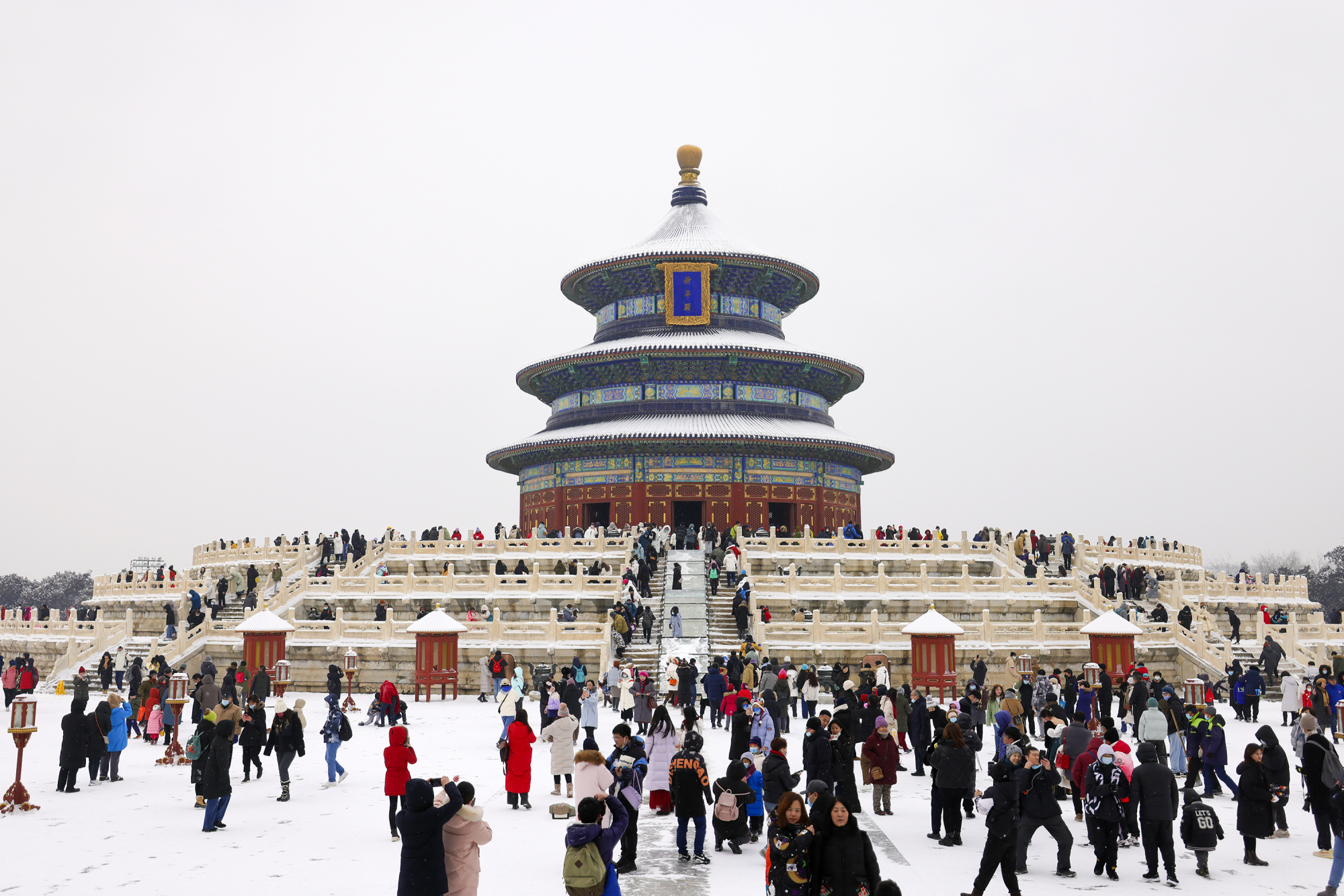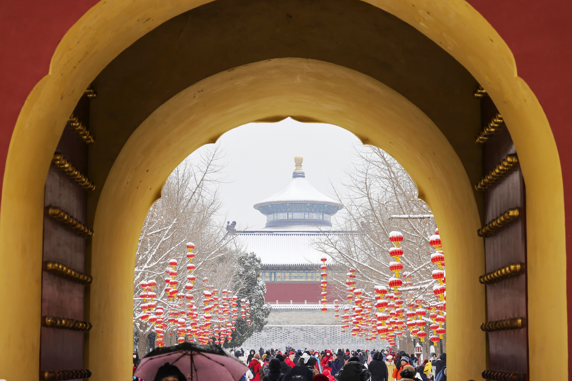 虎年初雪纷然落下,天坛公园银装素裹,如诗如画。庄严肃穆的祈年殿,喜气洋洋的红灯笼、俏皮可爱的小松鼠……吸引众多游客游玩、拍照。