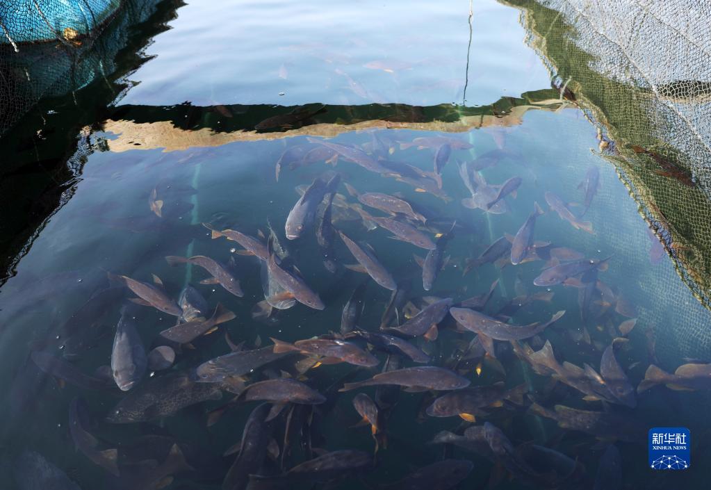 网箱中养殖的鱼(1月27日摄)。新华社记者 李钢 摄