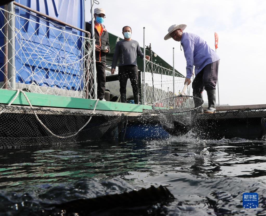 渔民捞鱼出水(1月27日摄)。新华社记者 李钢 摄