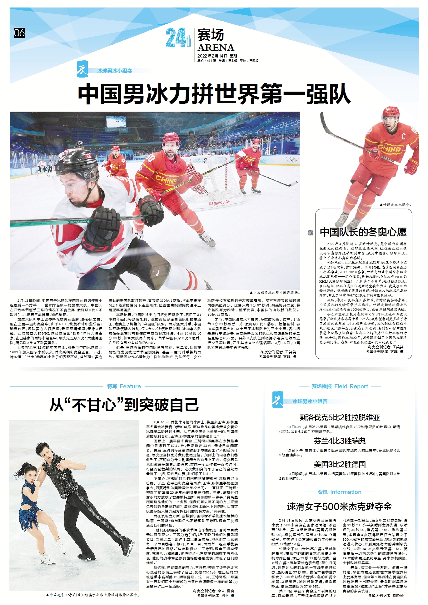 尽己所能献上良好表现的同时,叶队长也心怀更大愿景。“我认为冰球属于每一个人,我希望看到更多孩子看了我们的比赛后,对冰球产生兴趣,加入到这项运动中来。”他说,“20年后,如果我打开电视,看到有一位中国球员登上世界顶级舞台,当有人问起他为什么打冰球的时候,他会说,因为在2022年,我亲眼见证了中国队征战冬奥会的比赛。我想,那就是我们这一代人的成功。”