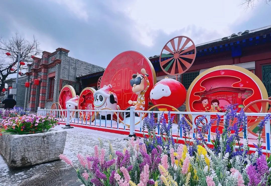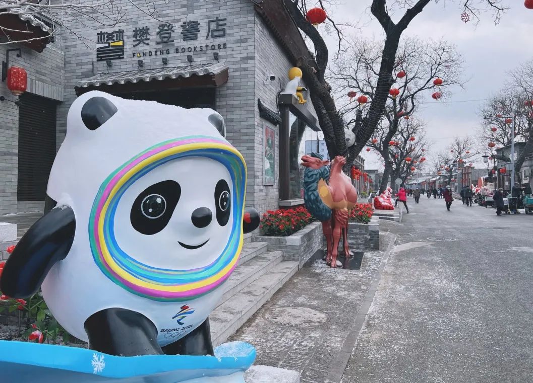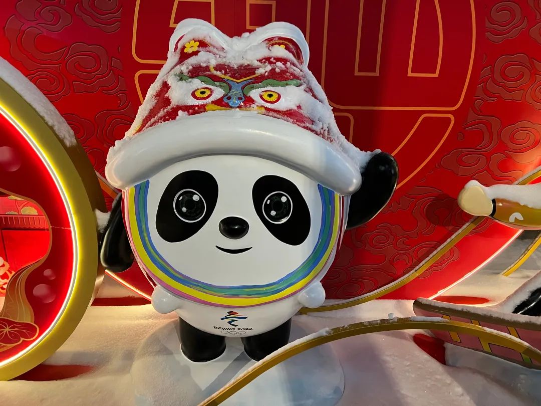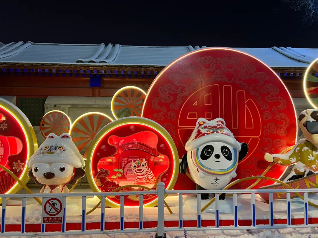 除了此前已经“入驻”的骆驼、猫咪等元素,模式口今年特意请来冰墩墩、雪容融一起欢庆春节、冬奥之喜。