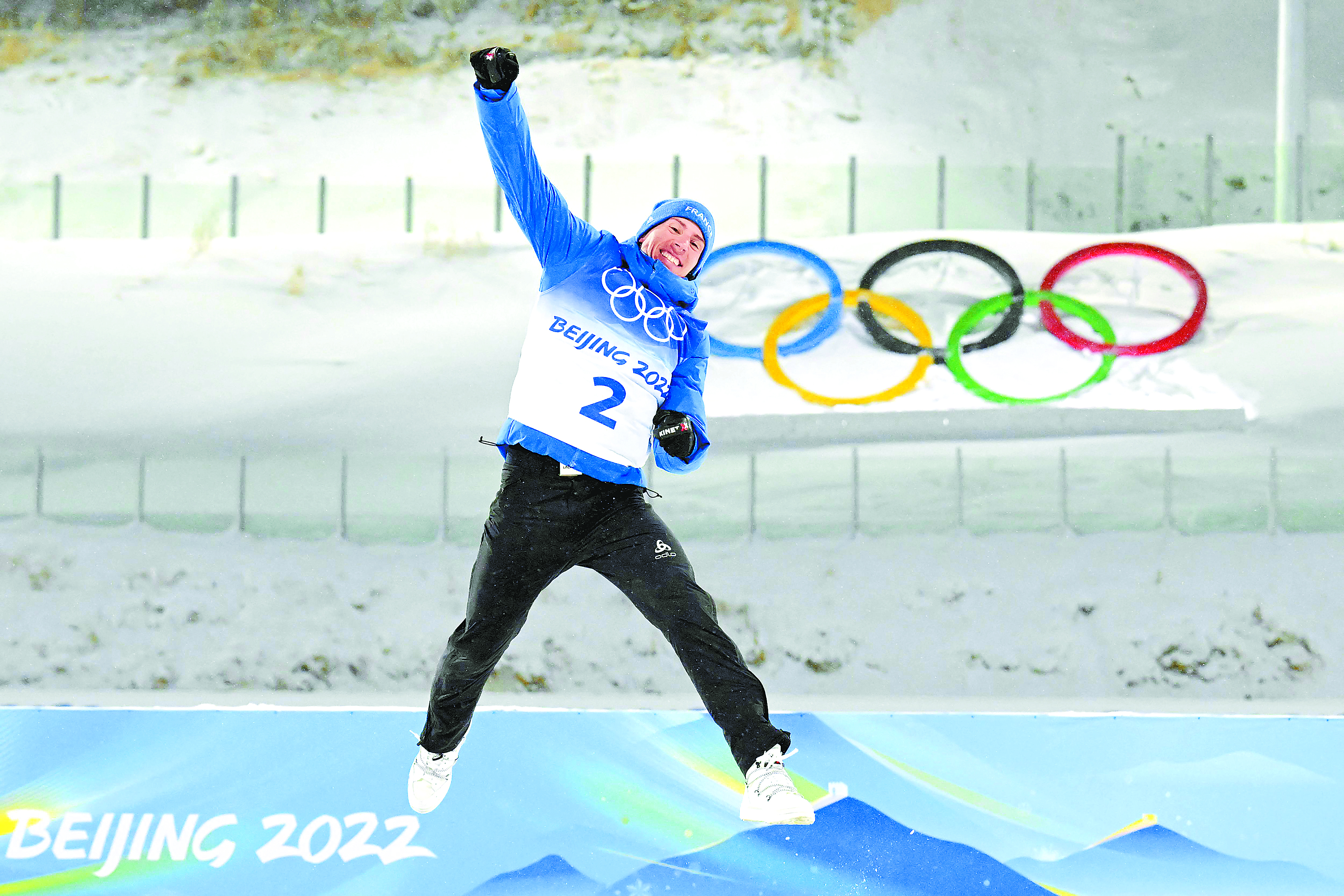 急速滑行,弹无虚发,在冬季两项男子12.5公里追逐赛中,法国选手康坦·马耶凭借20发20中的精准射击,以39分07秒5的成绩赢得了自己在北京冬奥会上的第二枚金牌。