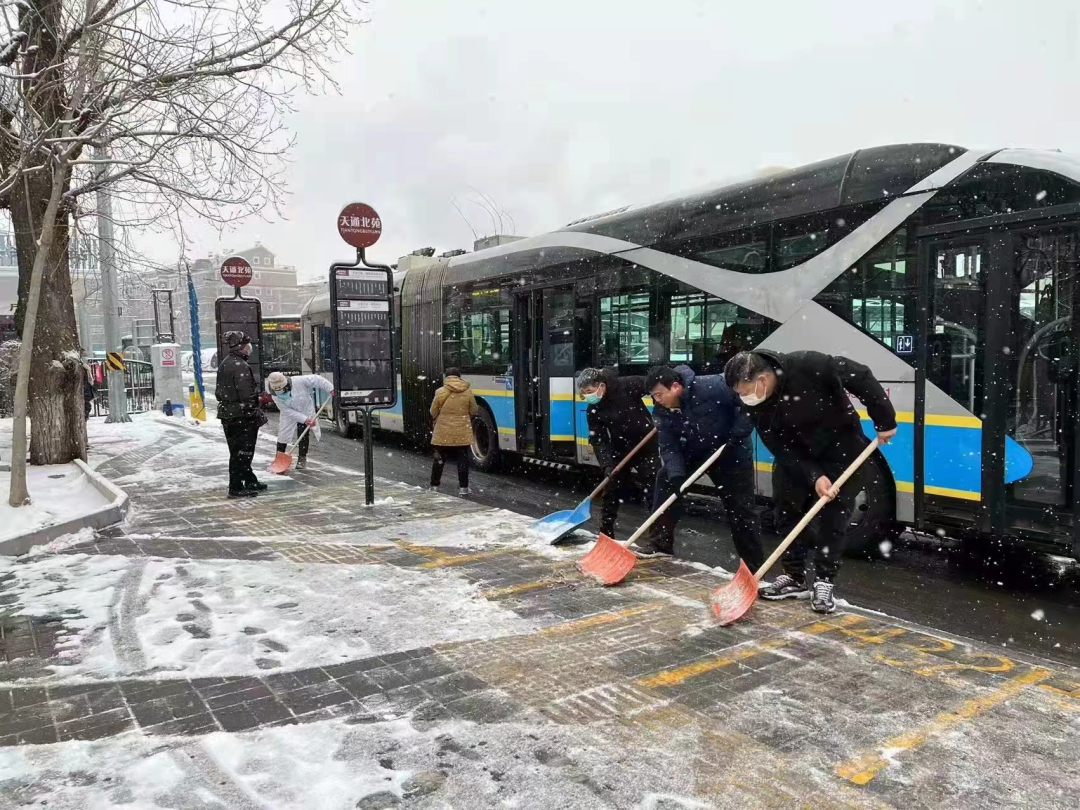 本轮降雪期间,公交地铁各运营企业一线保障人员全面停休,全方位提供服务保障,落实客流疏导措施,通过延长高峰运营时间、加密发车间隔、增配机动车、调发区间车、中途屯车等调度措施,尽最大努力加大运力投入,满足市民出行需求。
