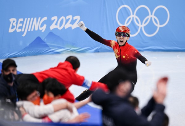 8.扬脖儿看冬奥比赛。