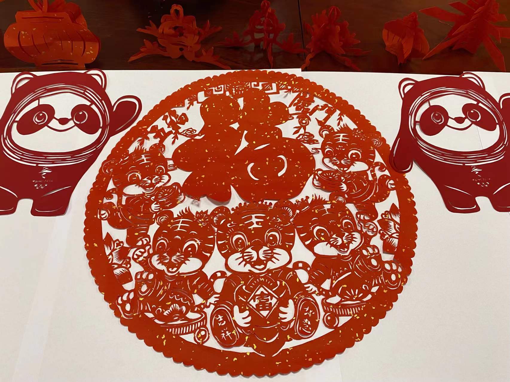 活动现场,清水园社区剪纸班老师郑宇以“虎”为主要元素,通过“线上+线下”相结合的方式,为社区剪纸爱好者们进行讲解,郑老师一边说一边动手示范。不一会儿,一个个喜气洋洋、惟妙惟肖的虎年题材剪纸作品便呈现在大家眼前。居民们在掌握了剪纸的基本方法后,立刻上手实践起来,或剪或裁、或贴或折,尽情发挥着自己的想象力,创作出一幅幅别具特色的剪纸作品。