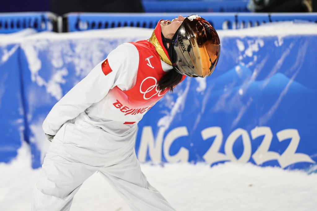 披上国旗,朝着跳台的方向,她跪倒在雪地里。起身,她已情不能自已,一声声呐喊,响彻云顶滑雪公园的上空。