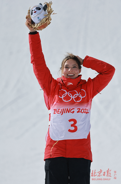 2月15日,在北京冬奥会张家口赛区云顶滑雪公园进行的自由式滑雪女子坡面障碍技巧决赛中,谷爱凌凭借第三次滑行,以0.33分之差获得了银牌。“今天非常不容易,我不知道为什么在自己身上放那么多压力,今天又是第三跳。”谷爱凌之所以强调“第三跳”,是因为在之前结束的大跳台比赛中,她正是通过第三跳——最后一跳逆转拿下了冠军,而这一次她是最后一跳逆转登上了领奖台,“但这真的很有趣,我一直以来的目标都是享受过程,中间摔了一跤,当时感觉不太好,但最终还是调整自己,取得了突破,所以我非常骄傲。”