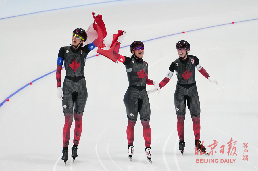 2月15日下午,北京冬奥会速度滑冰女子团体追逐决赛在国家速滑馆“冰丝带”进行,加拿大队最后时刻击败平昌冬奥会这个项目的冠军日本队,夺得金牌,并以2分53秒44的成绩刷新奥运会纪录。