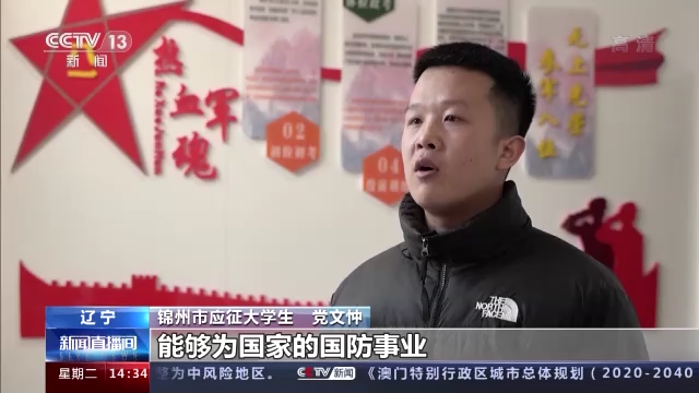 辽宁省锦州市应征大学生 党文忡:我认为当兵很光荣,能够为国家的国防事业献出自己的力量。我要积极响应号召,用自己的青春和热血来书写精彩的军旅人生。