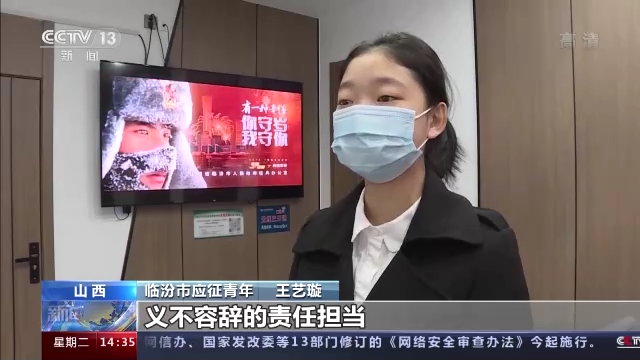 临汾市应征青年 王艺璇:参军报国是新时代青年义不容辞的责任担当,作为新时代的一名在校大学生,我将把强军报国视为人生中最光荣的使命和最荣耀的经历,在火热的军营中淬火成钢、矢志成才。