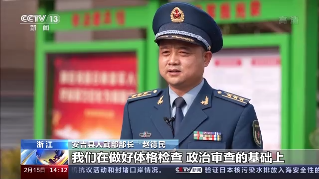 安吉县人武部部长 赵德民:我们在做好体格检查、政治审查的基础上,全面衡量应征青年综合素质,从部队用兵视角审视征兵工作,前移兵员筛选关口,通过精准化征集,不断提升部队和应征青年的双向满意度。