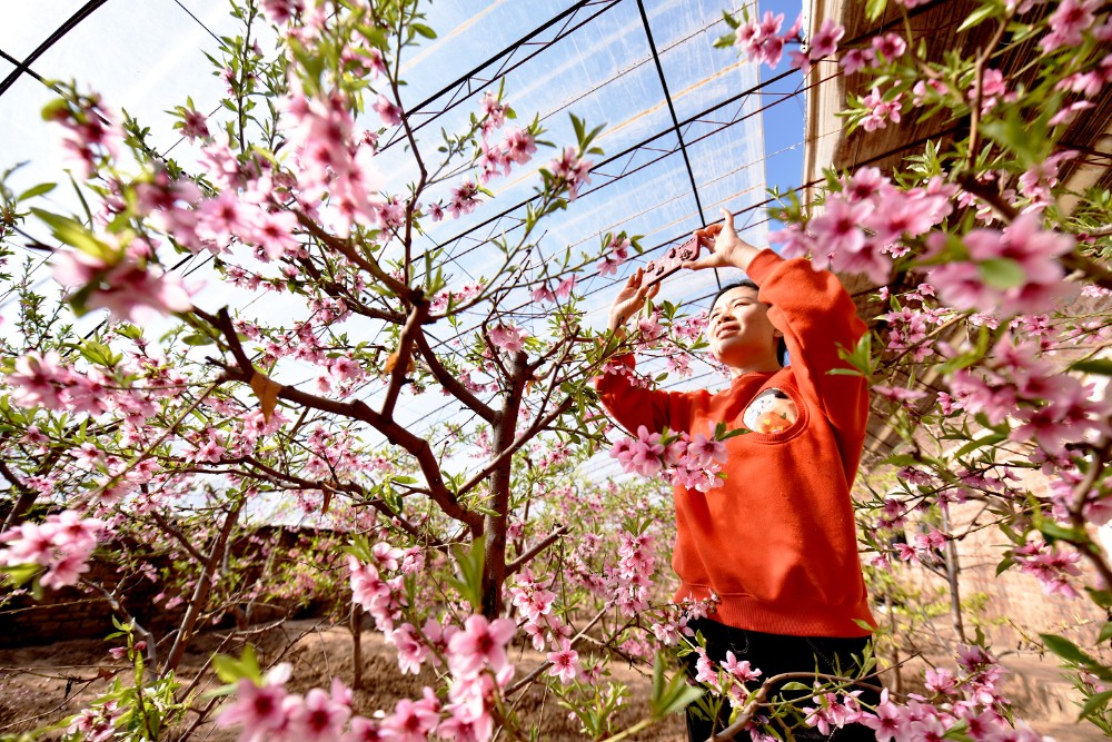近日,张家口市宣化区洋河南镇金坤农业观光园的樱桃花、桃花进入盛花期,成为新年一道靓丽风景,吸引众多游客前来观赏游玩,拓宽农民增收致富路。