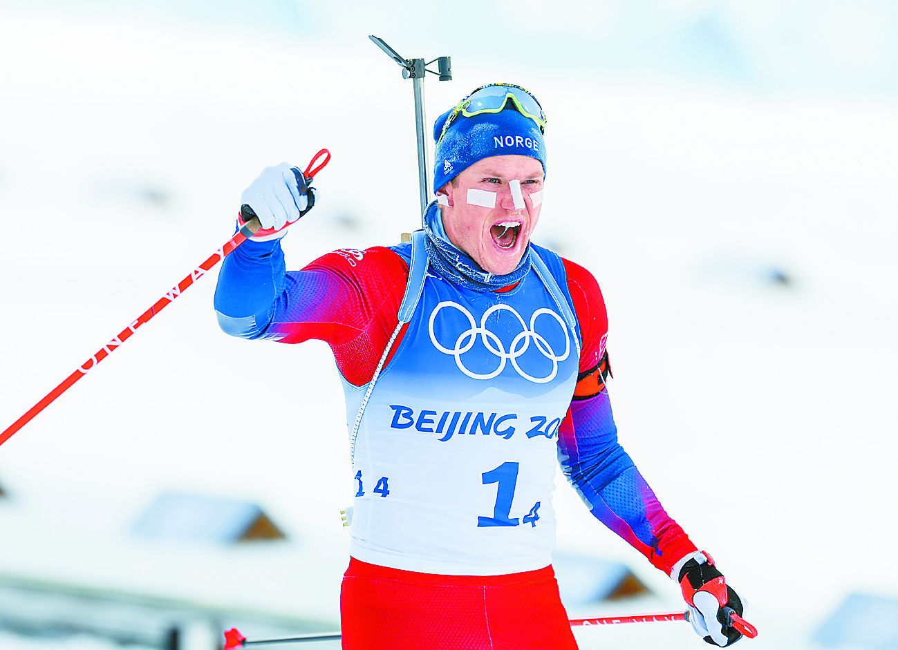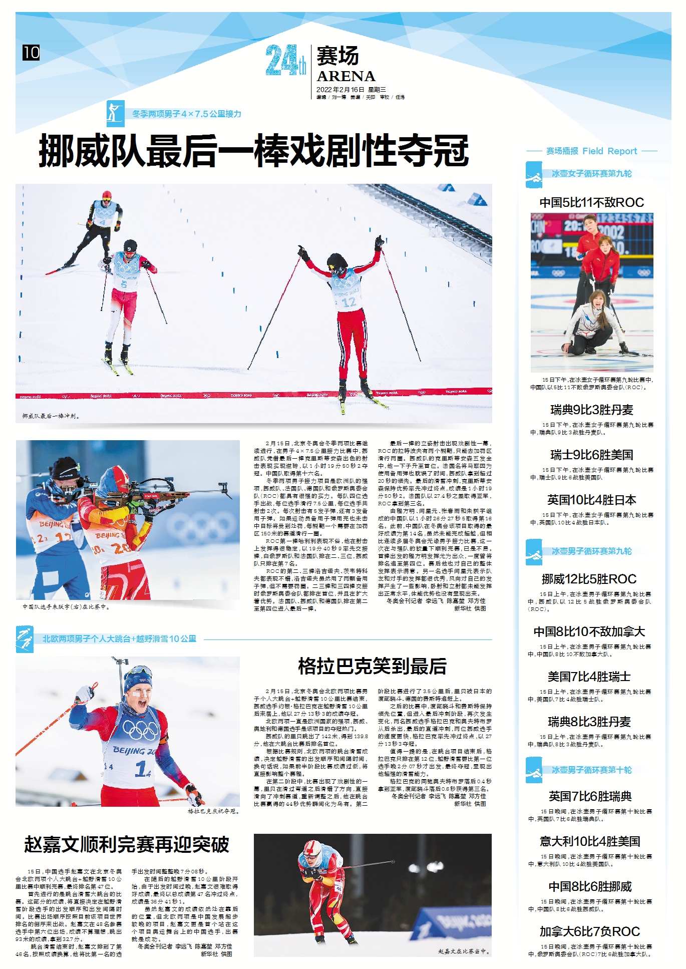 2月15日,北京冬奥会北欧两项比赛男子个人大跳台+越野滑雪10公里比赛结束,挪威选手约根·格拉巴克在越野滑雪10公里后来居上,他以27分13秒3的成绩夺冠。