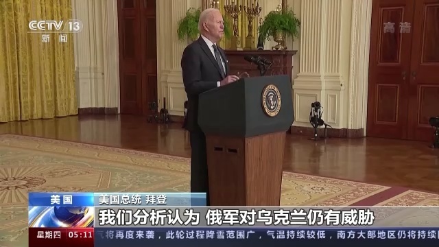 美国总统 拜登:我们分析认为,俄军对乌克兰仍有威胁,俄军入侵乌克兰可能性仍很大。