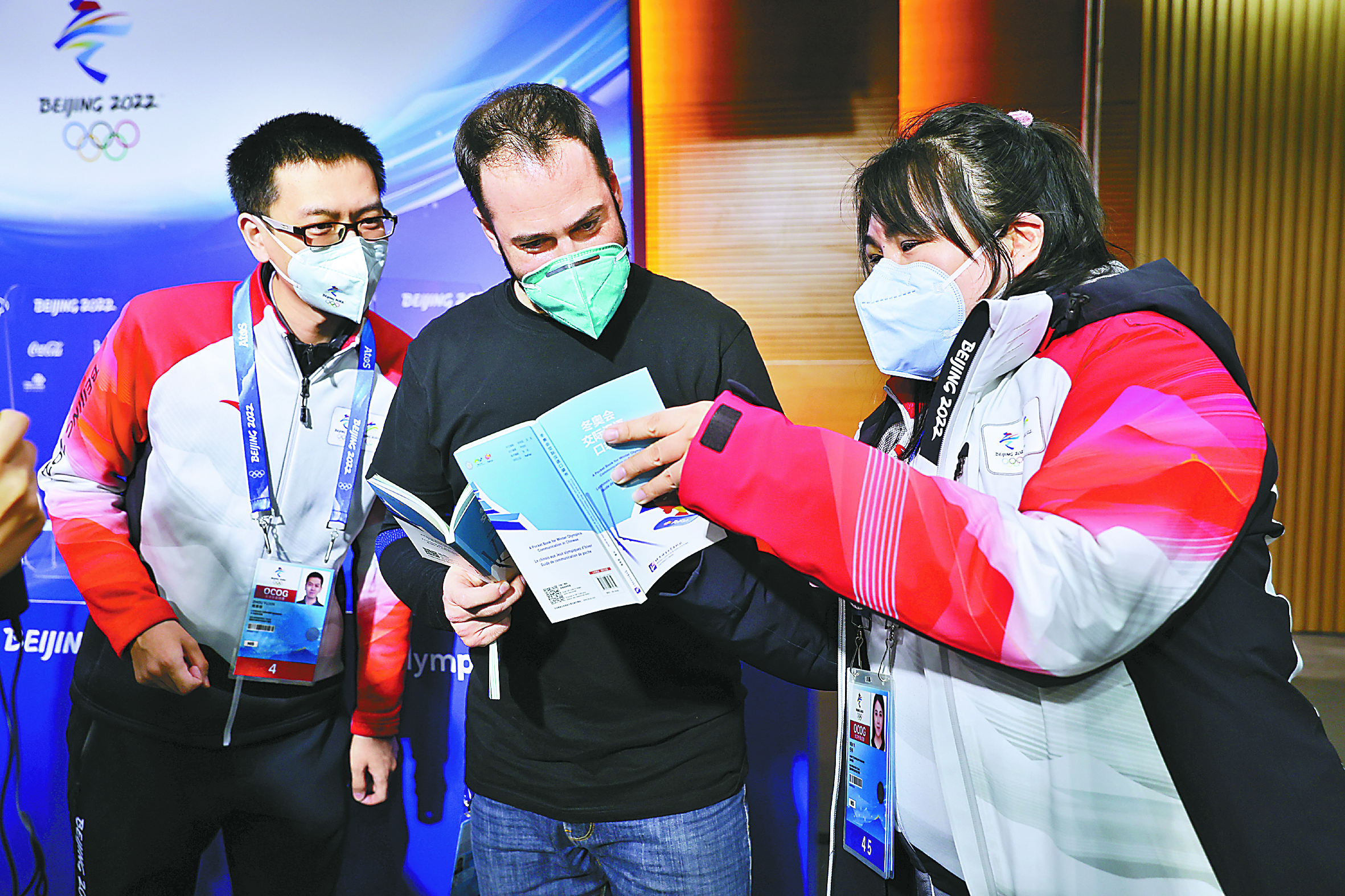 “zhe ge Bing Dwen Dwen(冰墩墩)tai ke ai le ! Xue Rongrong(雪容融)wo ye xi huan ……”2月15日下午,国家体育馆场馆新闻发布厅举办《冬奥会交际汉语口袋书》首发式,在场馆担任技术音视频系统工程师的葡萄牙人福斯托·普罗切特现场学起了汉语,举着冬奥吉祥物冰墩墩气球对照《口袋书》汉语拼音一遍一遍地读。