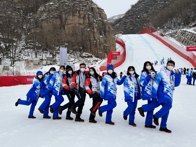 2月17日中午,随着高山滑雪女子全能滑降比赛项目的结束,国家高山滑雪中心的竞速区全部比赛均已顺利完成。赛后,运动员、媒体记者、工作人员等纷纷来到竞速区这条名为“ROCK”的赛道上拍照留念,定格下这一精彩的瞬间,希望精彩的比赛和完美的保障工作成为最美好的回忆。