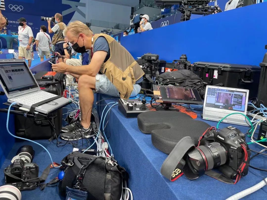 2021年东京奥运会上,新华社记者的设备(前)与世界顶尖通讯社并无二致