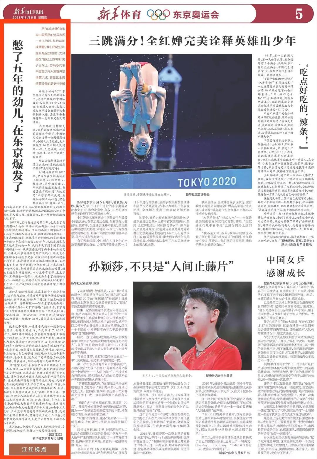 2021年8月5日,东京奥运会闭幕前3天,江红以评论的形式再次回顾中国队超强成绩单取得背后的奋勇拼搏