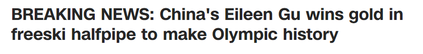 在18日举行的北京冬奥会自由式滑雪女子U型场地技巧比赛中,中国队选手谷爱凌夺得冠军,为中国体育代表团摘得第8金。美国有线电视新闻网(CNN)等美媒第一时间报道了相关消息,并称赞谷爱凌创造了奥运历史。
