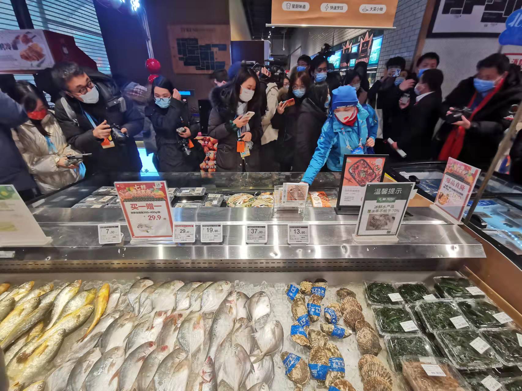 如果说第一站让记者们了解了电商物流的速度与智慧,那么第二站则是展现了线上与线下消费打通给百姓带来的便捷。在京东七鲜超市门口,配送员忙着把刚刚打包好的商品装进红色的无人配送车。从超市到顾客之间的这段路依靠无人配送车来完成。 “智能物流车投放了多少辆?”“配送量占订单总量多少?”记者们对全程无接触无人配送车充满了好奇,不少外国记者抢着提问。