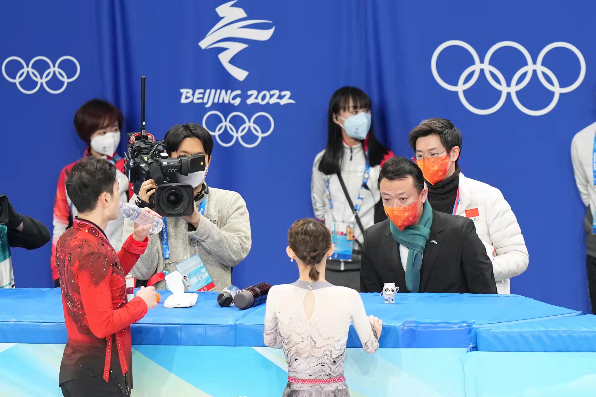 在赛后采访中,中国花样滑冰队总教练赵宏博表示:我们为这一刻准备很久了。赵宏博说:“花滑比赛从冬奥会开幕式那一天就开始打,这对双人滑选手而言是一种无比的煎熬和压力,媒体的宣传、对手的状态、国人的期待让他们充满了紧迫感,但是这种压力也激励着隋文静和韩聪背水一战,他们今晚的发挥非常好。”