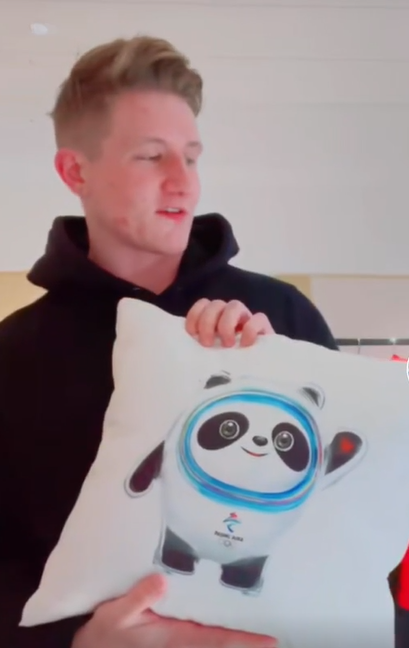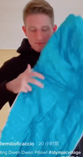 埃米利奥19日还向网友们展示了运动员房间里的“冰墩墩枕头”,只要拉开拉链,就能变身成一个小被子,“这太好玩啦”。