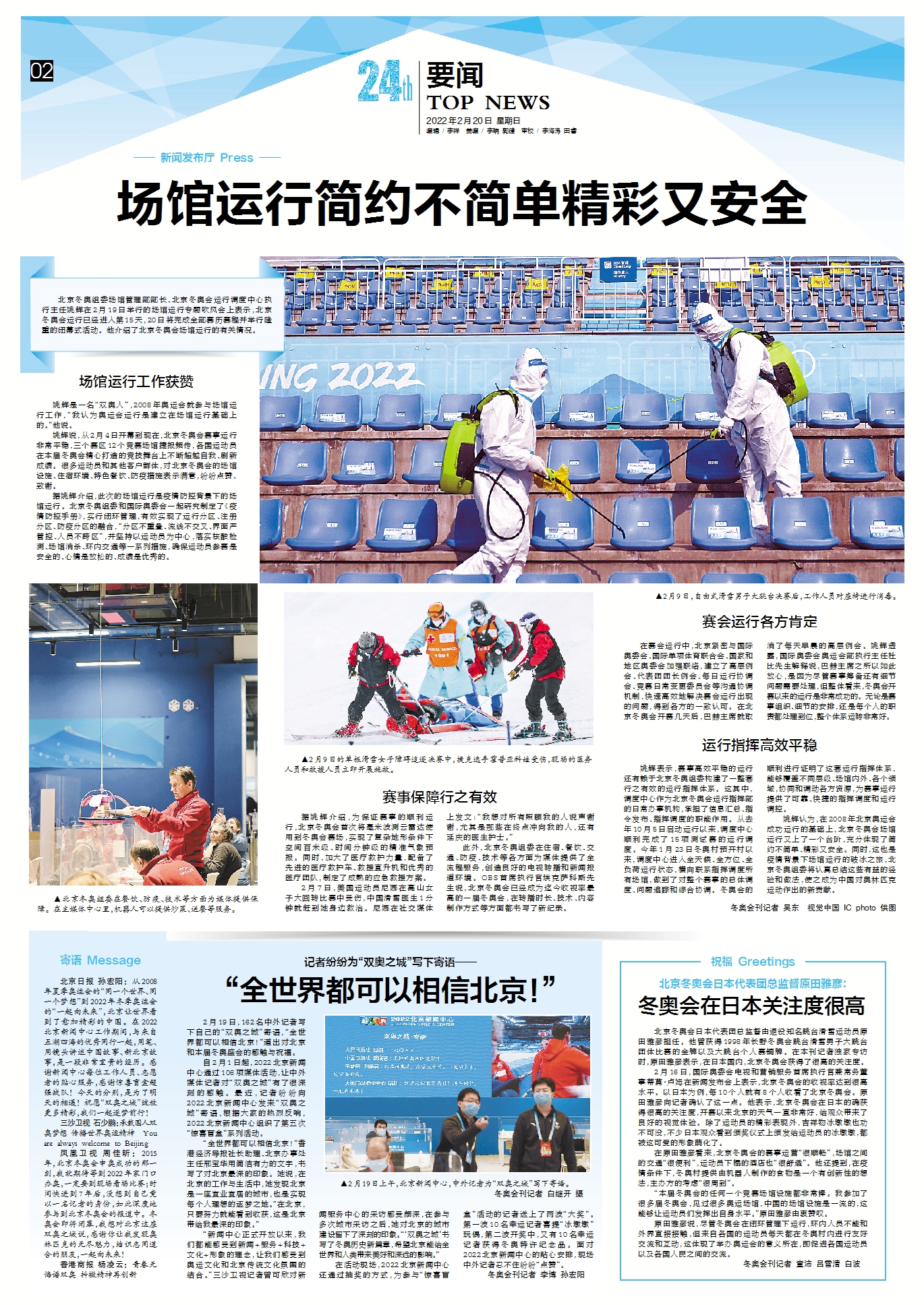 在赛会运行中,北京紧密与国际奥委会、国际单项体育联合会、国家和地区奥委会加强联络,建立了高层例会、代表团团长例会、每日运行协调会、竞赛日常变更委员会等沟通协调机制,快速高效地解决赛会运行出现的问题,得到各方的一致认可。在北京冬奥会开赛几天后,巴赫主席就取消了每天早晨的高层例会。姚辉透露,国际奥委会奥运会部执行主任杜比先生解释说,巴赫主席之所以如此放心,是因为尽管赛事筹备还有细节问题需要处理,但整体看来,冬奥会开赛以来的运行是非常成功的。无论是赛事组织、细节的安排,还是每个人的职责都处理到位,整个体系运转非常好。