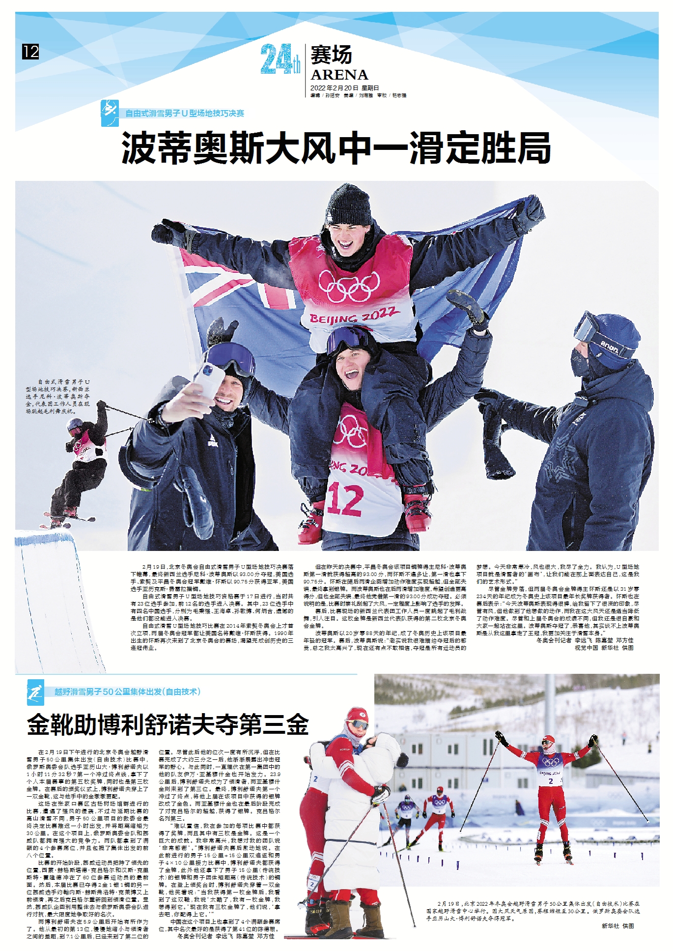 2月19日,北京冬奥会自由式滑雪男子U型场地技巧决赛落下帷幕,最终新西兰选手尼科·波蒂奥斯以93.00分夺冠,美国选手、索契及平昌冬奥会冠军戴维·怀斯以90.75分获得亚军,美国选手亚历克斯·费雷拉摘铜。