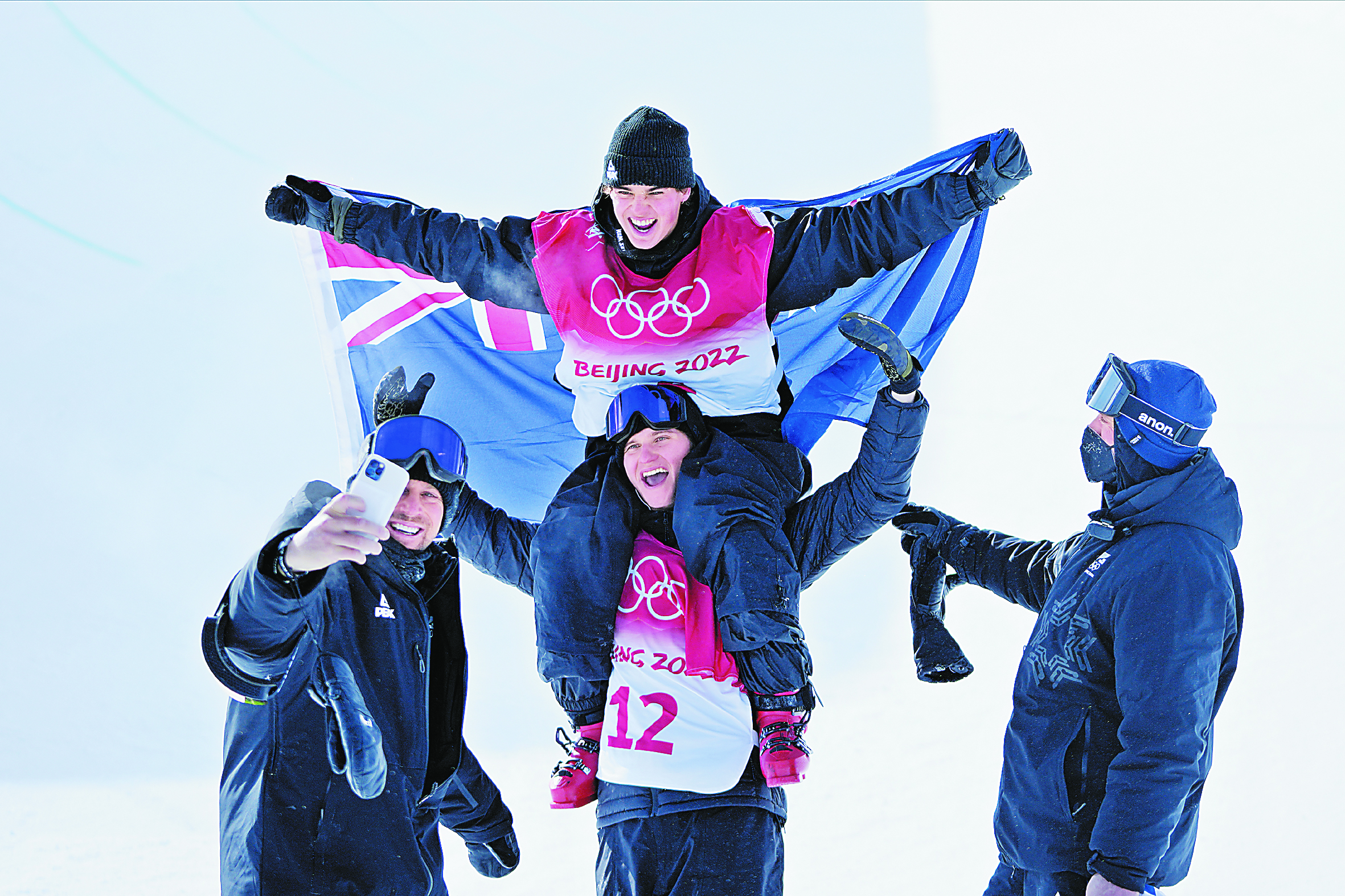 赛后,比赛现场的新西兰代表团工作人员一度跳起了毛利战舞,引人注目。这枚金牌是新西兰代表队获得的第二枚北京冬奥会金牌。