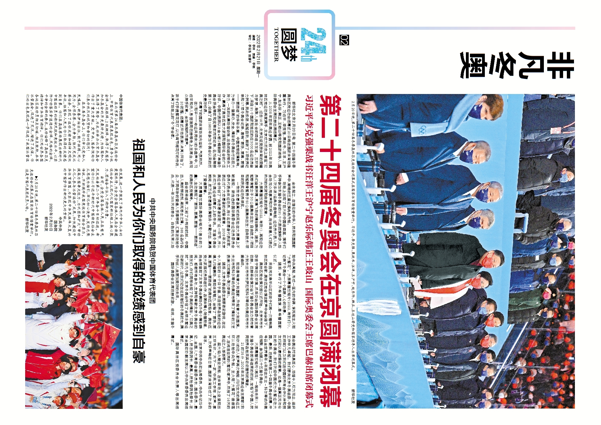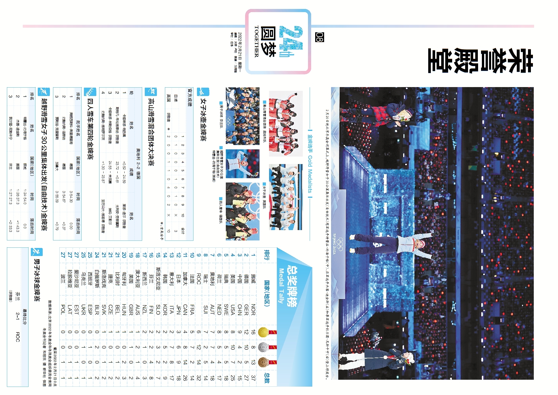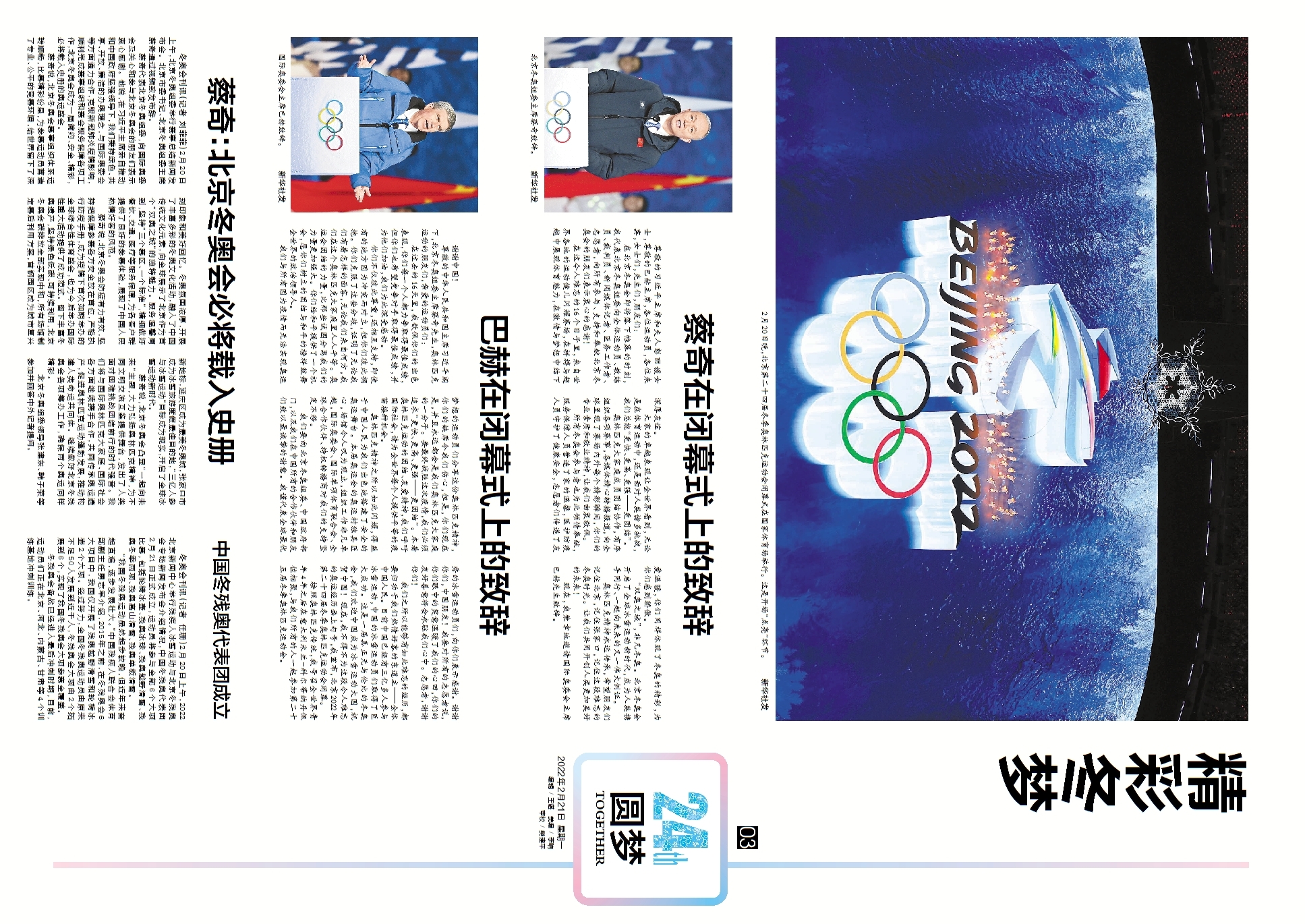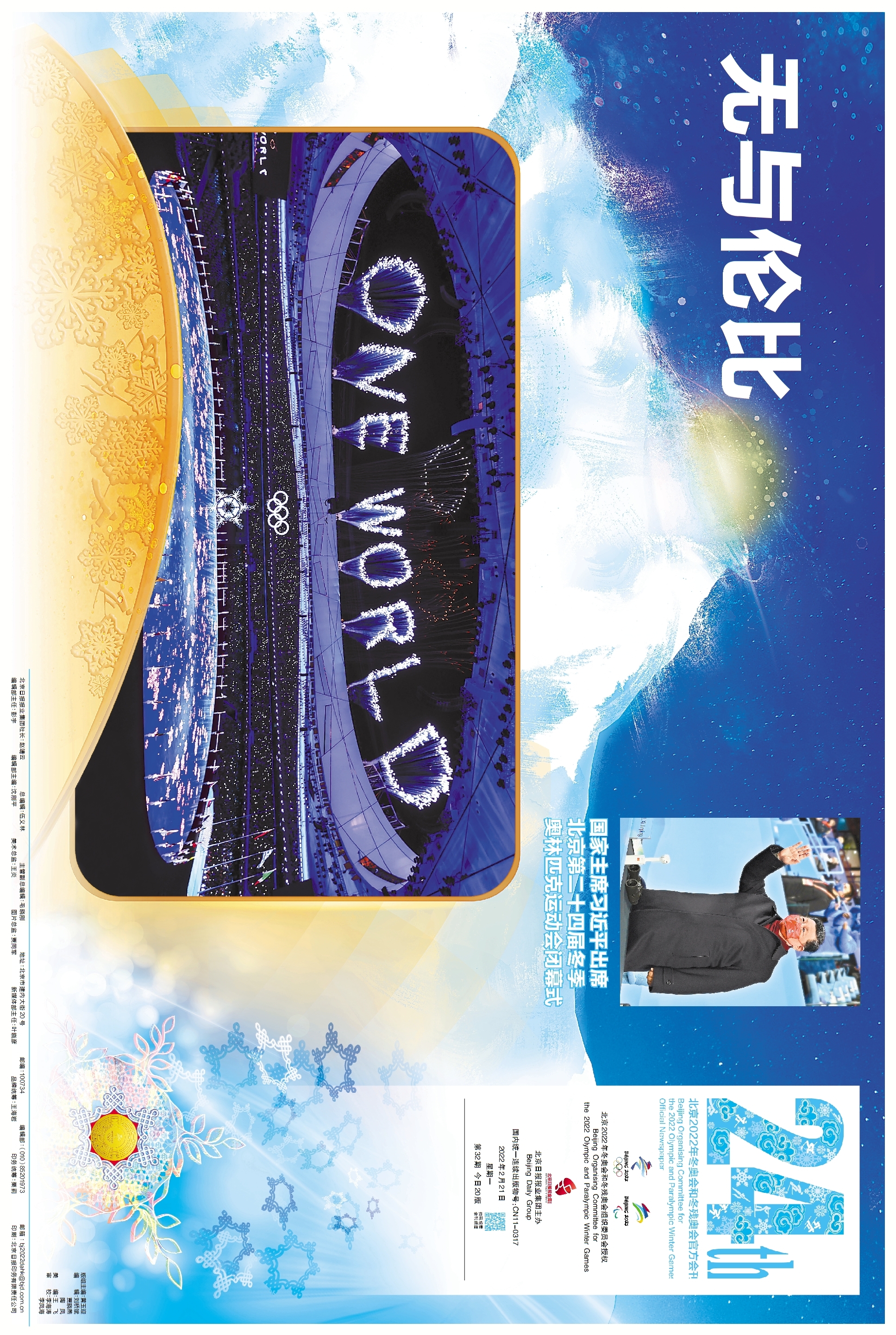 无与伦比!请珍藏这份闭幕式全景“画卷” 冬奥会刊2月21日精彩版面速览