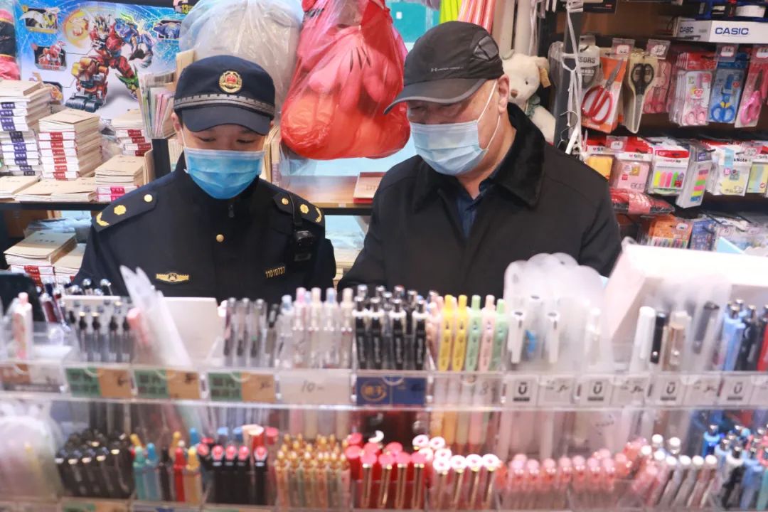 城管队员对文具店及其他校园周边环境秩序开展巡查