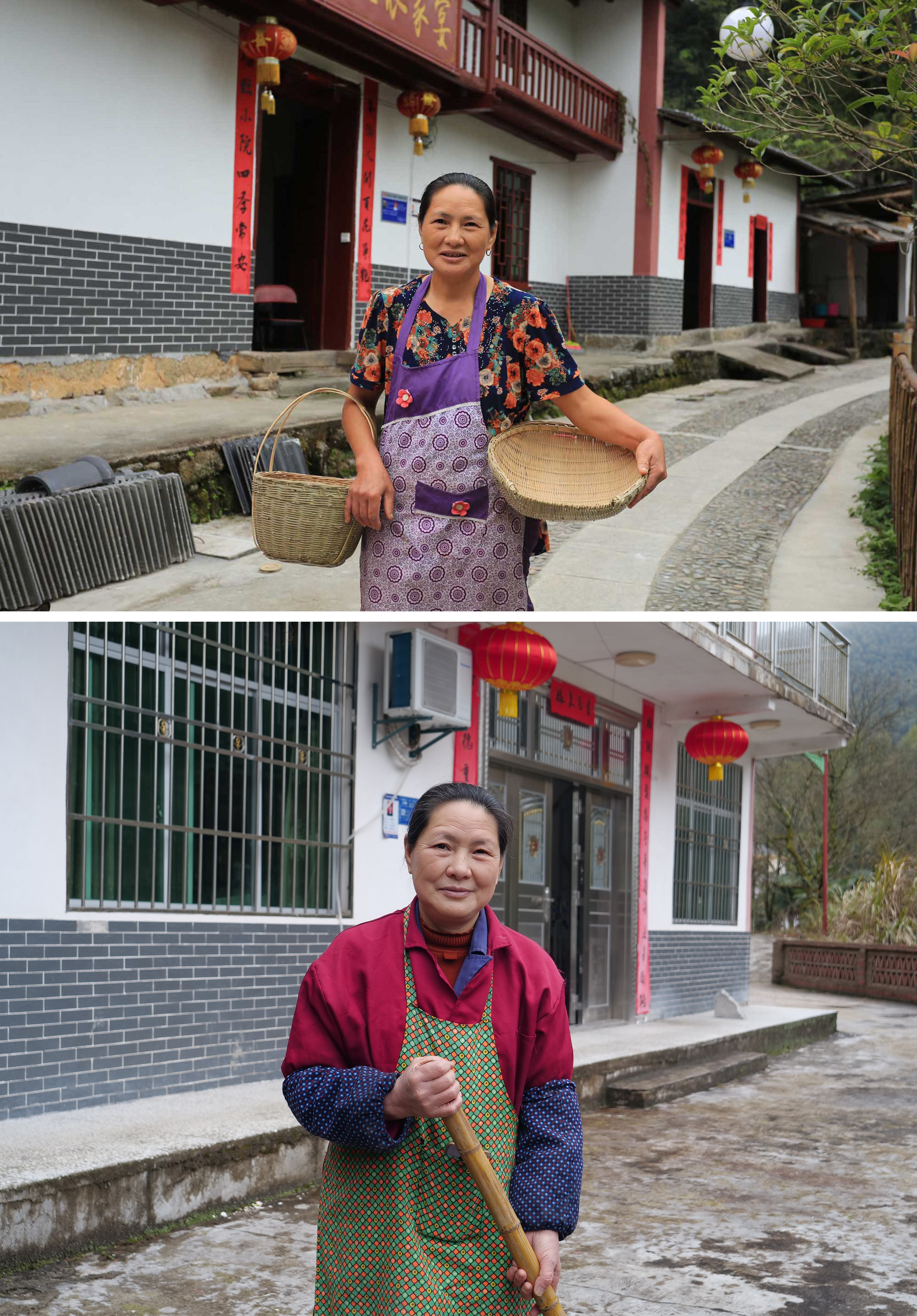 拼版照片:上图为江西省井冈山市神山村村民彭夏英站在自家开办的农家乐前(2016年9月10日摄,新华社记者万象摄);下图为彭夏英站在自家开办的民宿前(2022年2月15日摄,新华社记者郭杰文摄)。新华社发