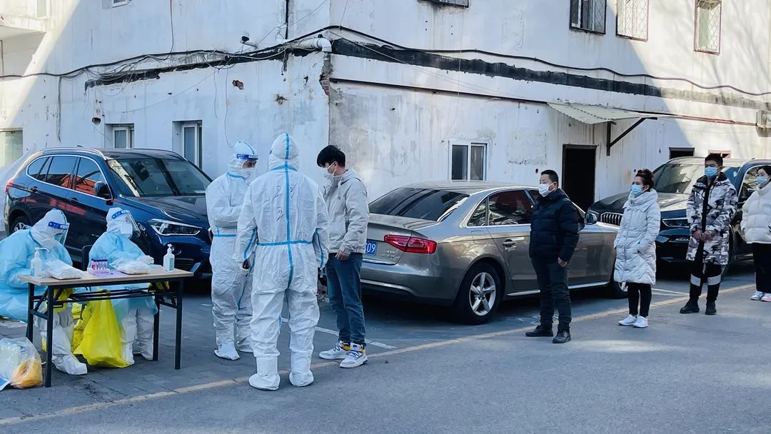 2月26日早上,封闭中的志强北园小区正在进行第二轮核酸检测。
