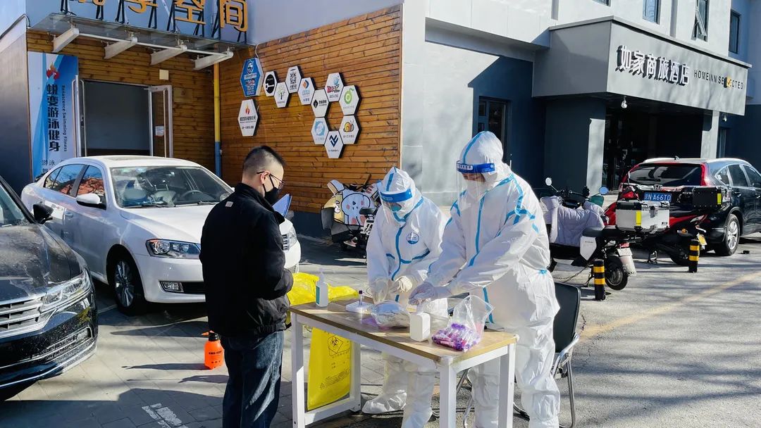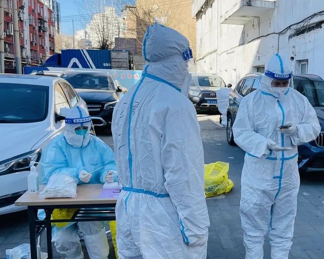 小区内设置10个临时采样组,以“包楼”的方式对管控区域内的居民进行核酸检测。而小区封控区域内的核酸检测是由常驻社区的工作人员陪同医务人员上门进行核酸检测采样。