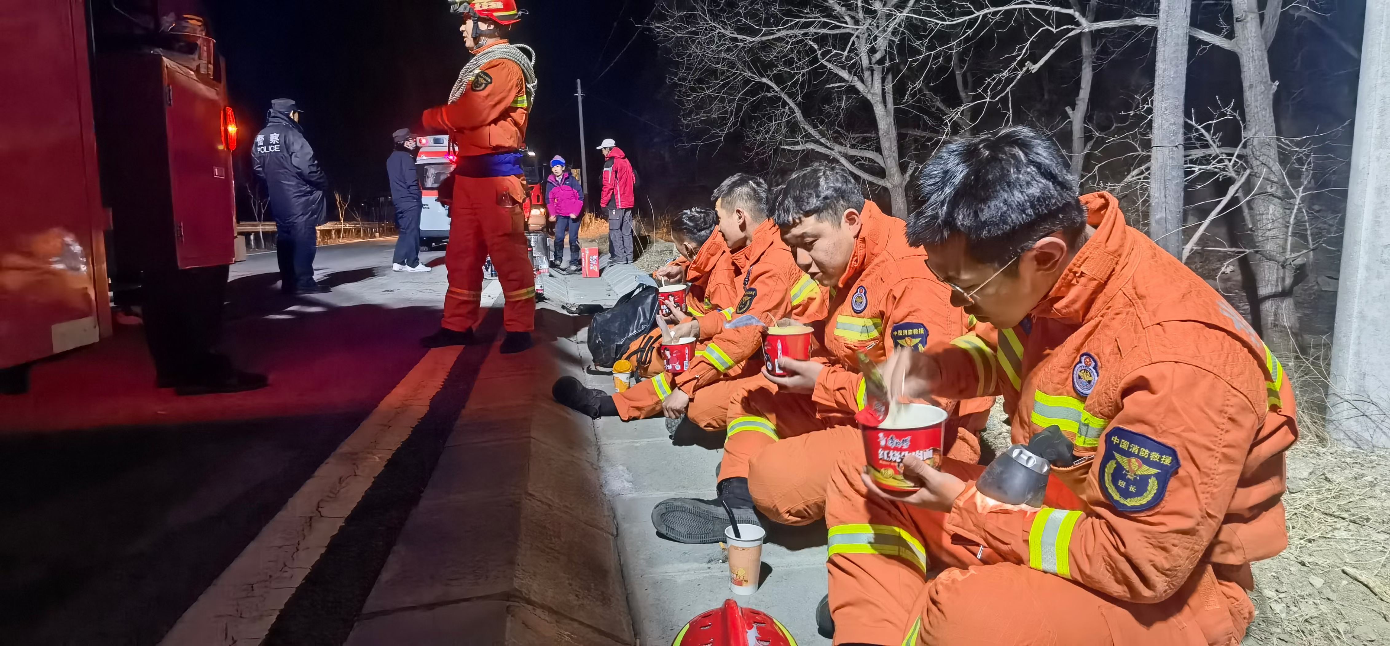 5时许,增援力量也在留守力量的配合下将其余8名被困人员安全转移下山。此次救援历时近12小时,一整夜的救援让消防员耗尽了体力,他们在山脚的路边席地而坐,抱着一碗泡面狼吞虎咽。