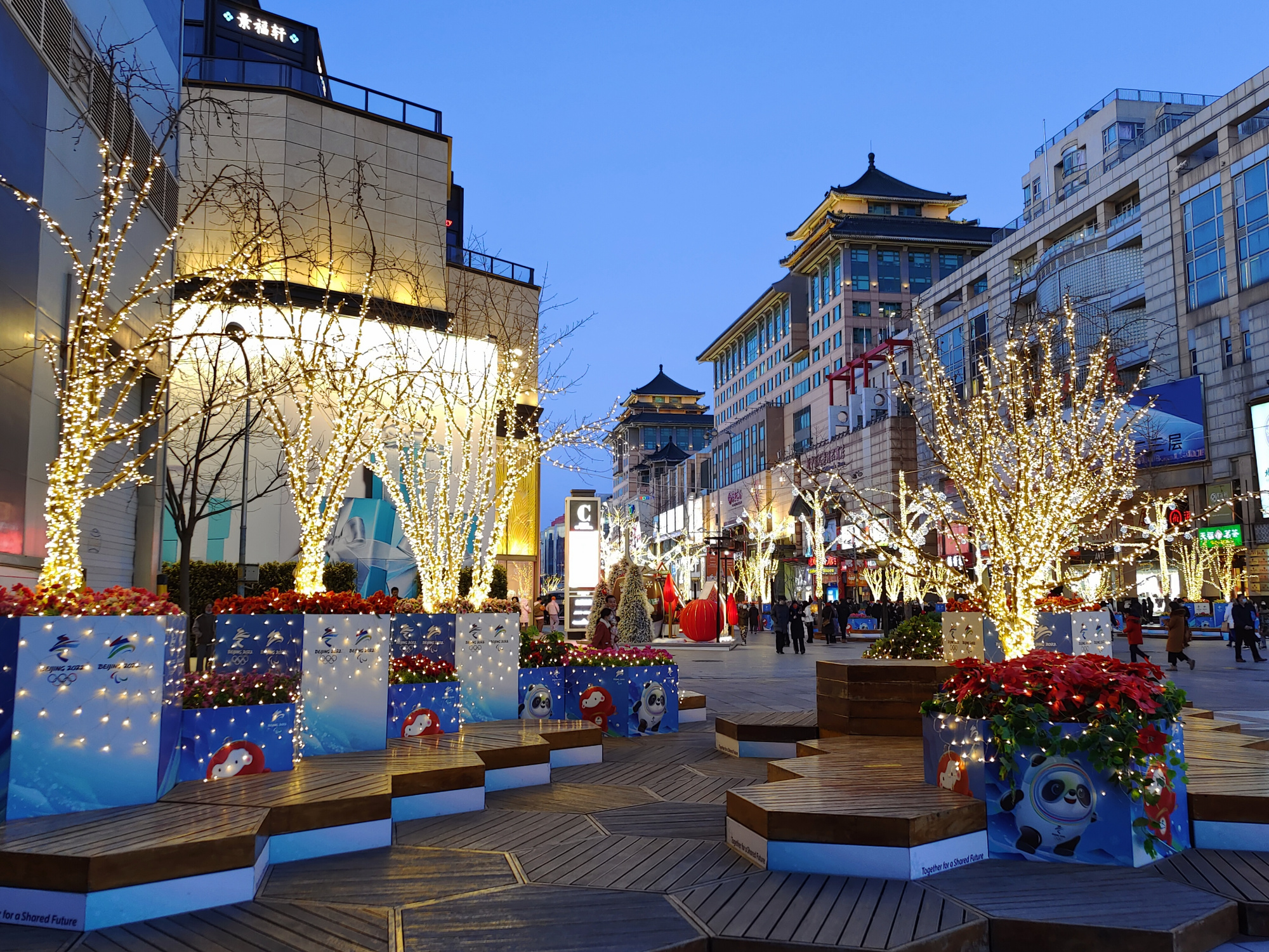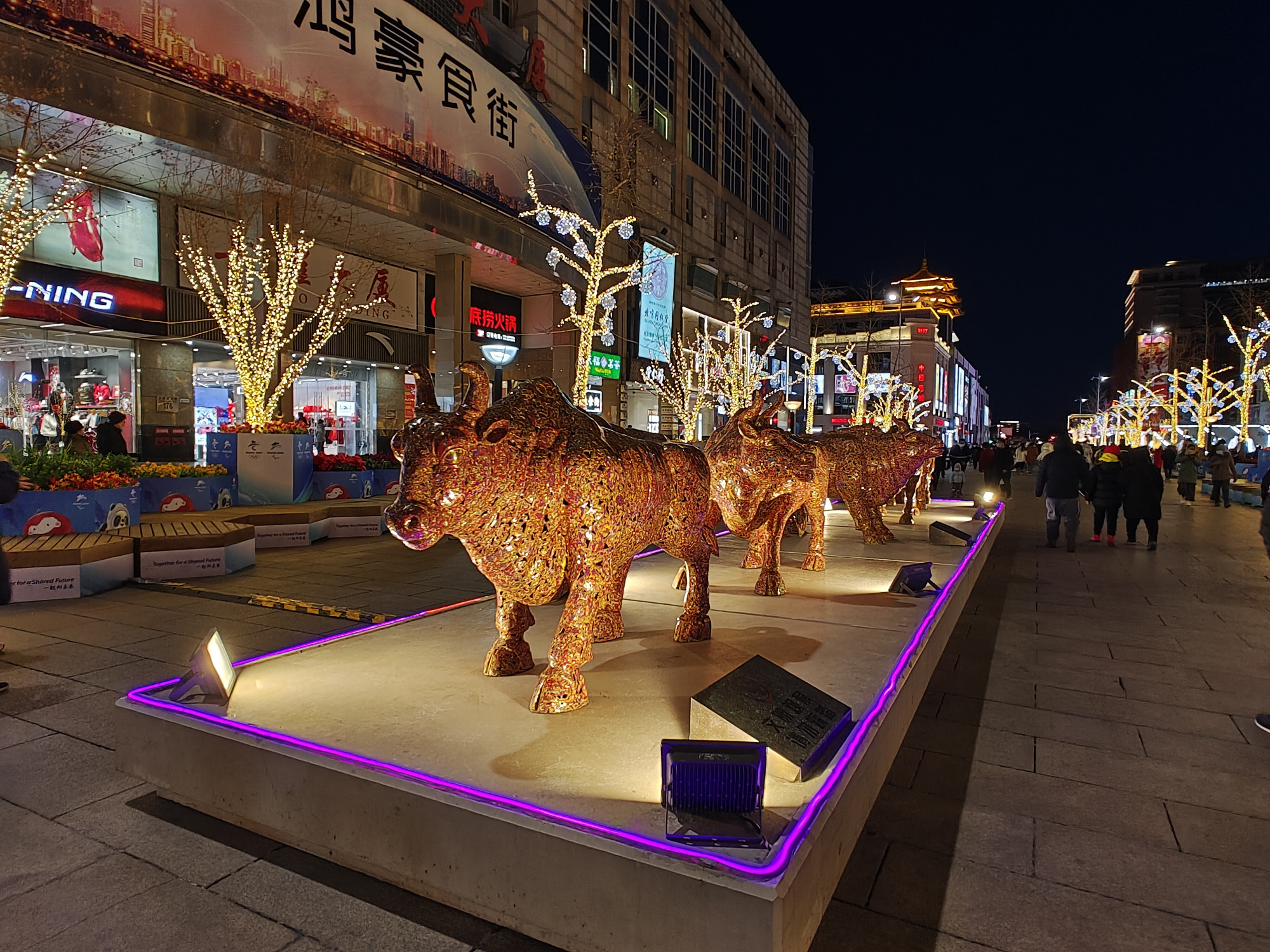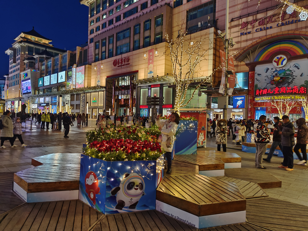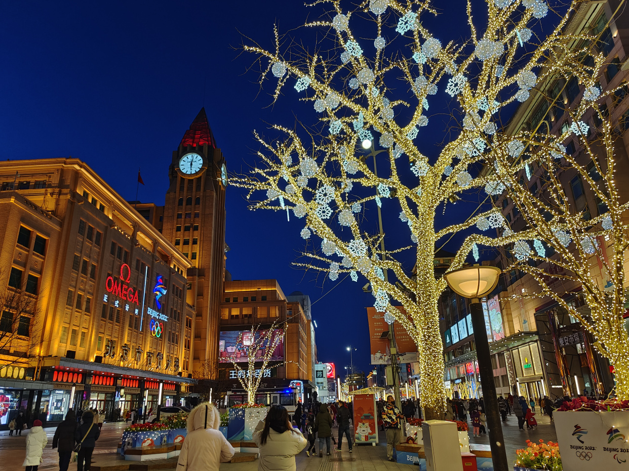 夜色中的王府井步行街灯光璀璨