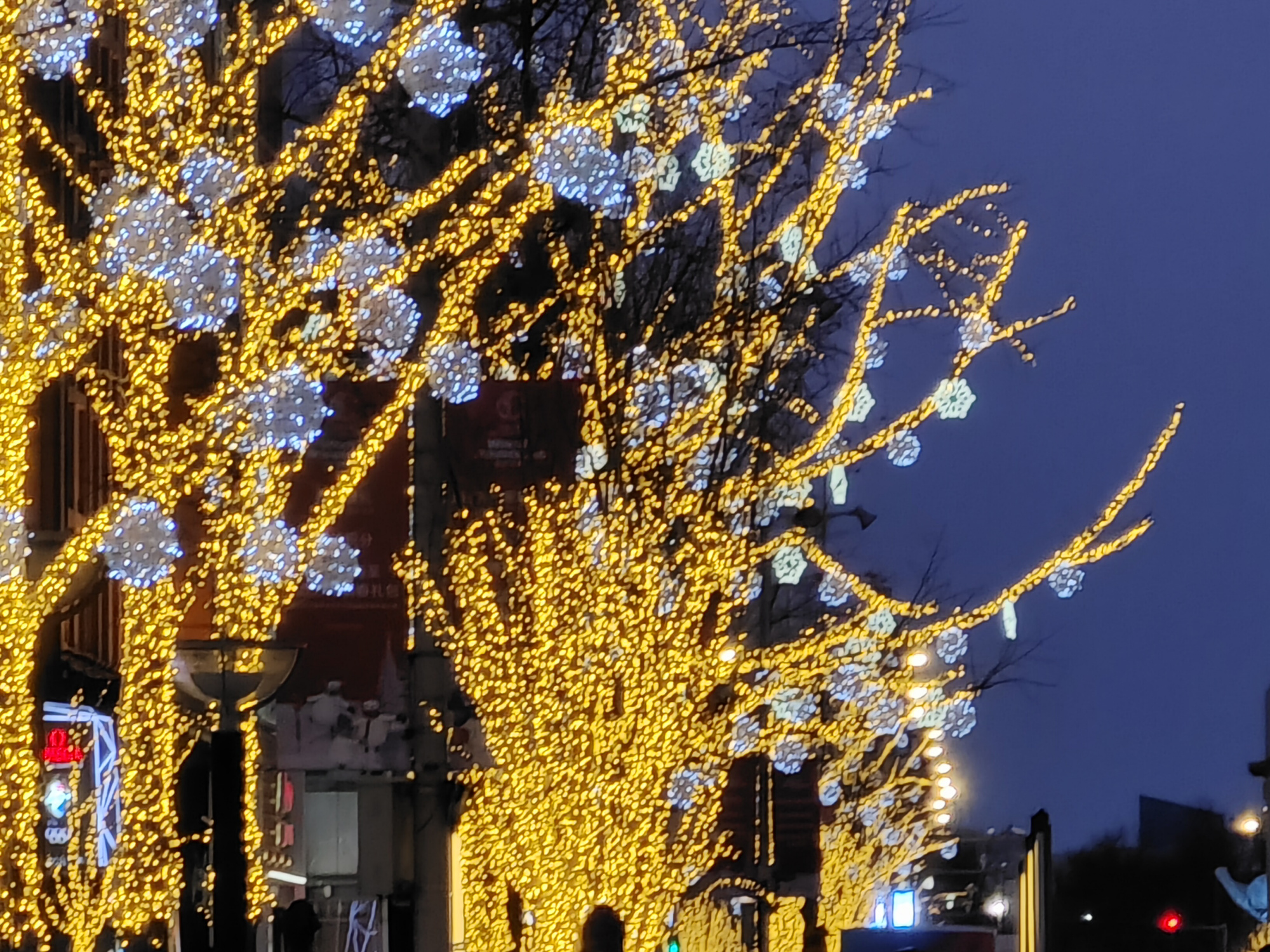 夜幕降临,华灯齐放,辉煌灿烂! 每当夜幕降临,整个王府井步行街仿佛变成了灯的海洋,光的世界。灯光闪烁间像银河从天而降,烘托出了一片安静而祥和的夜晚氛围。
